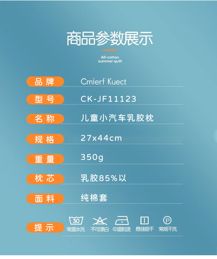 商品名称:Cmierf Kuect (中国CK)儿童小汽车乳胶枕27*44cm CK-JF11123 彩色 (新疆,西藏,宁夏,青海,内蒙古,甘肃,黑龙江,吉林,辽宁不发货)