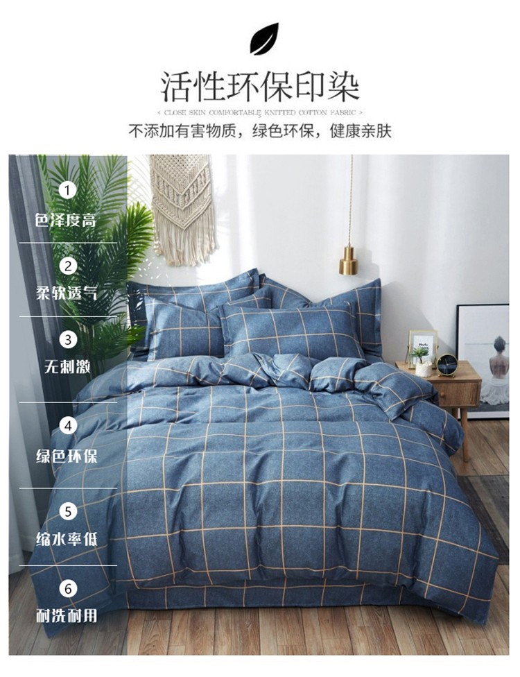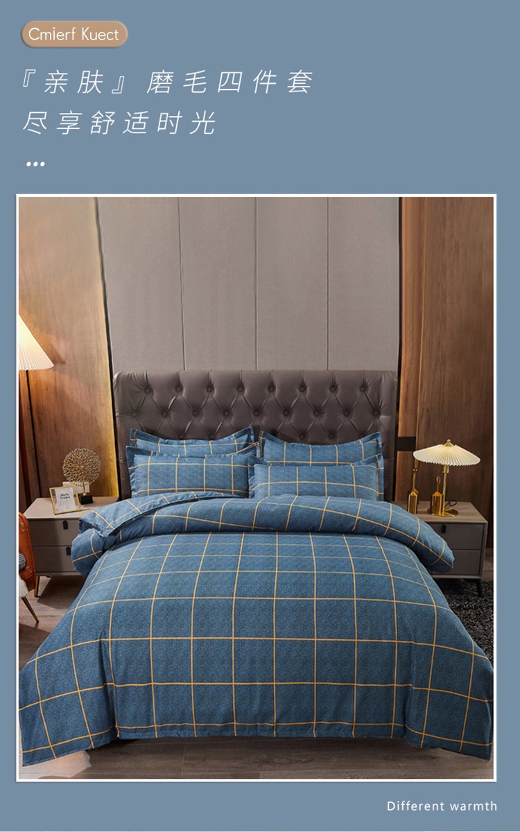 Cmierf Kuect (中国CK)简约芦荟棉富士山下亲肤磨毛四件套(被罩200*230cm)CK-JF11079 蓝色 (新疆,西藏,宁夏,青海,内蒙古,甘肃,黑龙江,吉林,辽宁不发货)