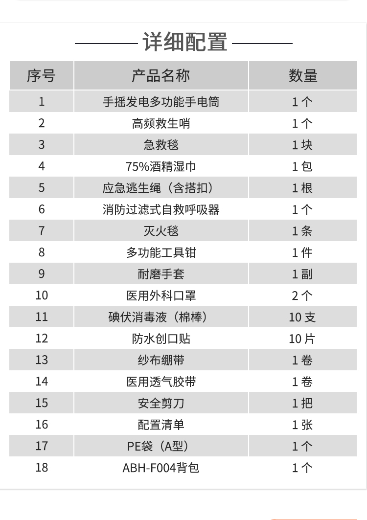 商品名称:爱备护 家庭人防应急包系列 家庭人防应急包 ABH-F004D