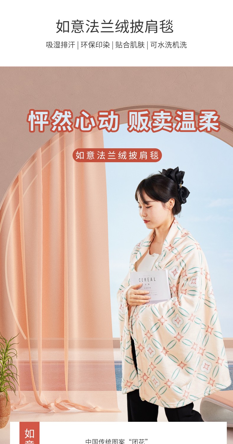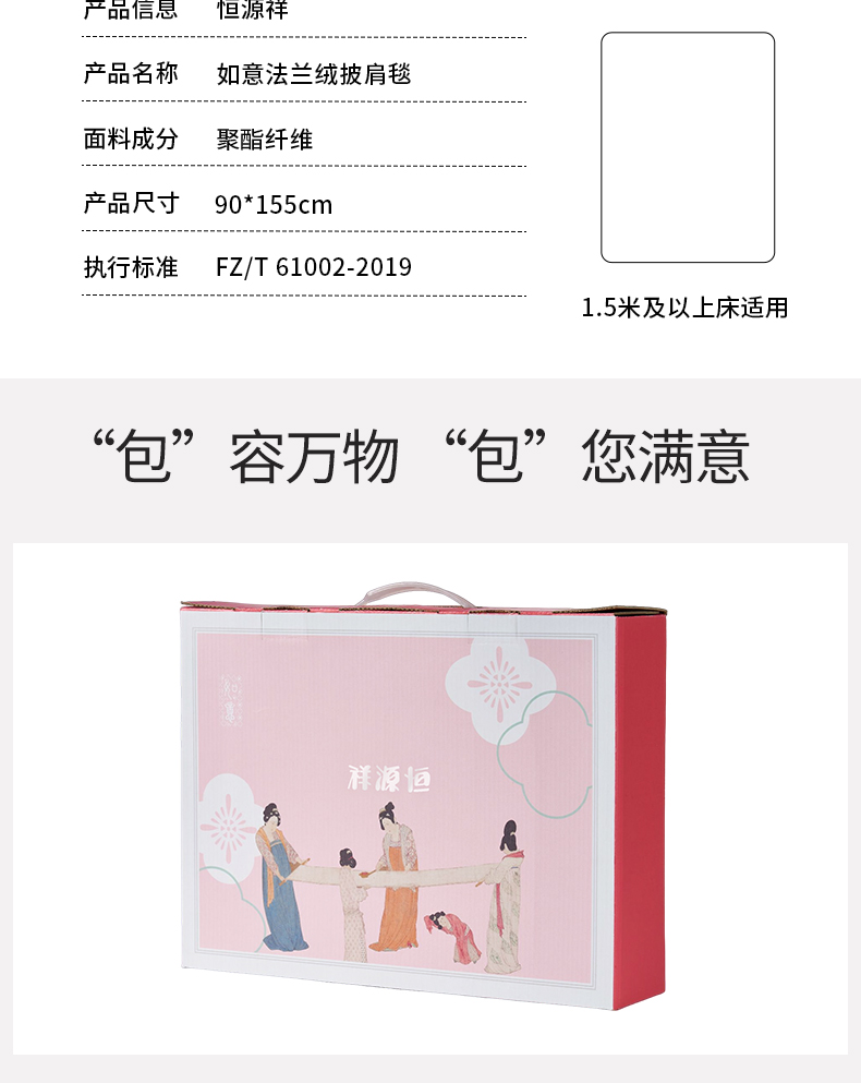 商品名称:恒源祥 如意法兰绒披肩毯HYX005MT-DZ(无纺布袋装)90*155cm