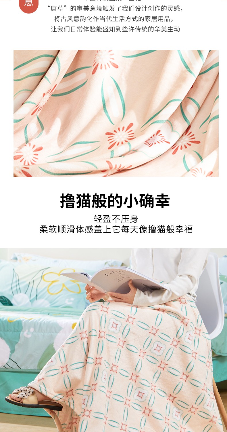 恒源祥 如意法兰绒披肩毯HYX005MT-DZ(无纺布袋装)90*155cm