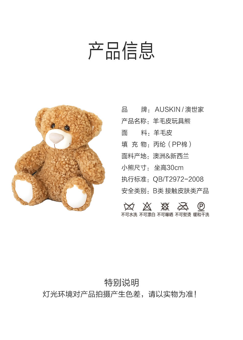 商品名称:AUSKIN澳世家 澳大利亚进口羊毛皮小熊玩偶 高30cm 珍珠色/ 蜜糖色/ 棕色 可选下单备注颜色