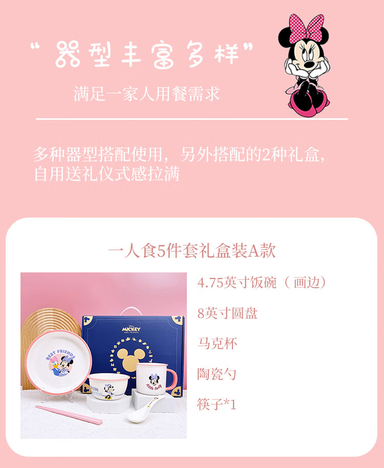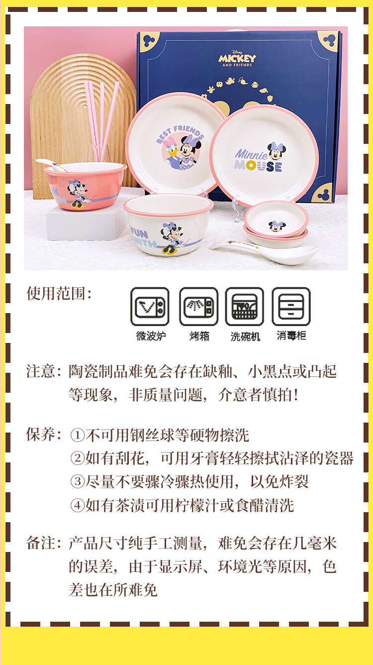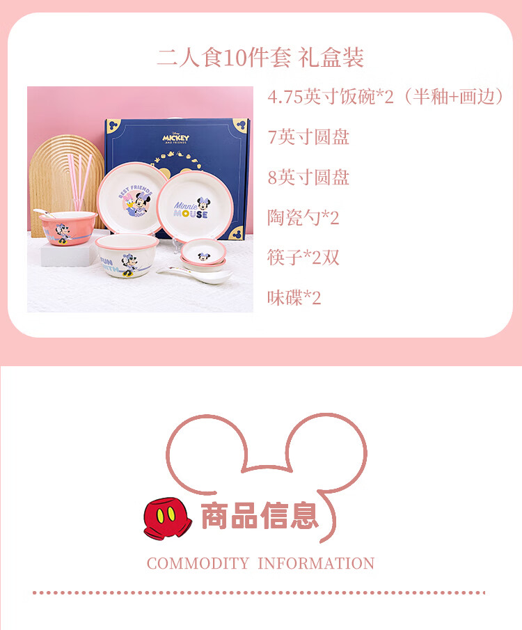 商品名称:迪士尼 米妮与黛西二人食10件套陶瓷餐具礼盒装WADSN-0080TCTE 6974992110631