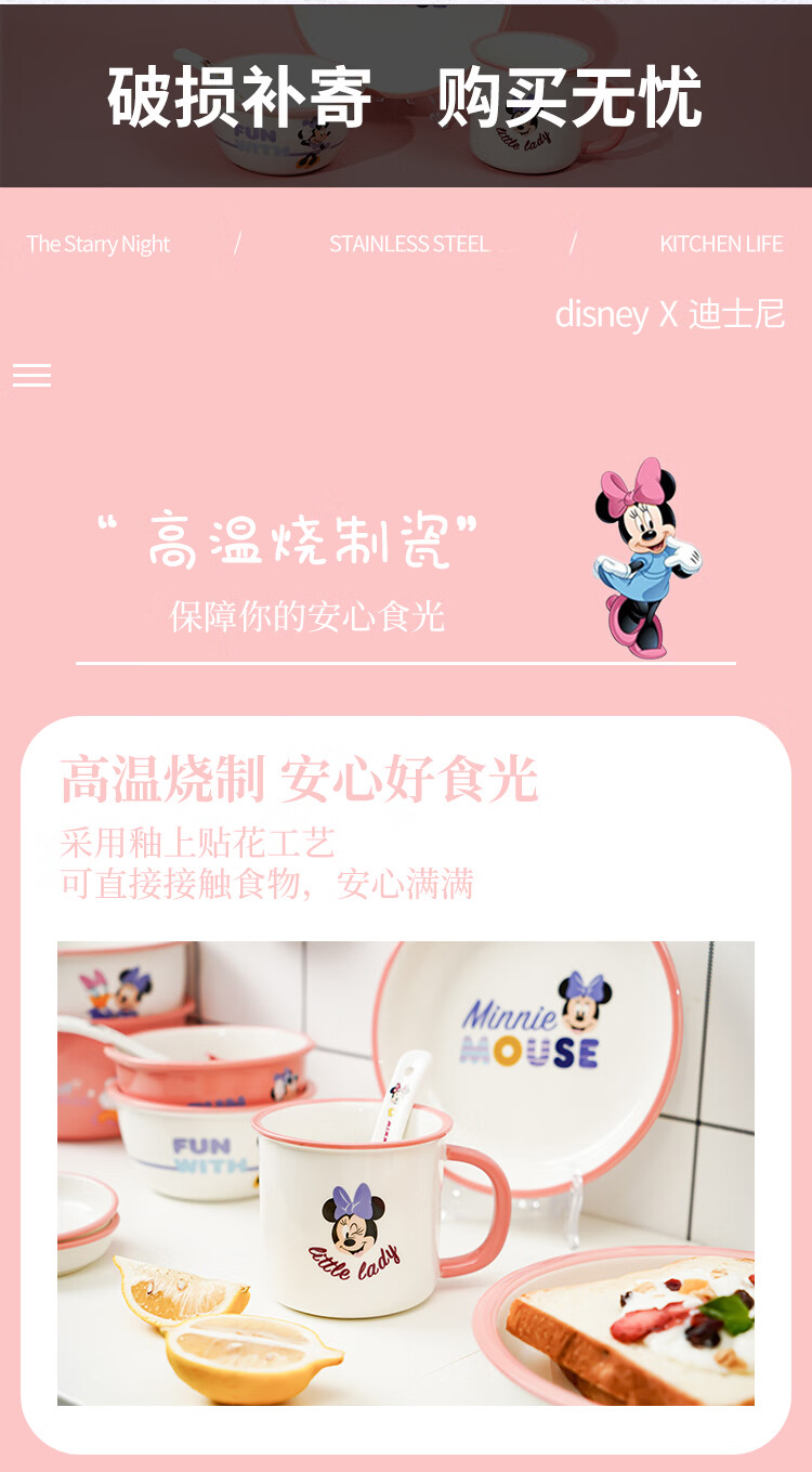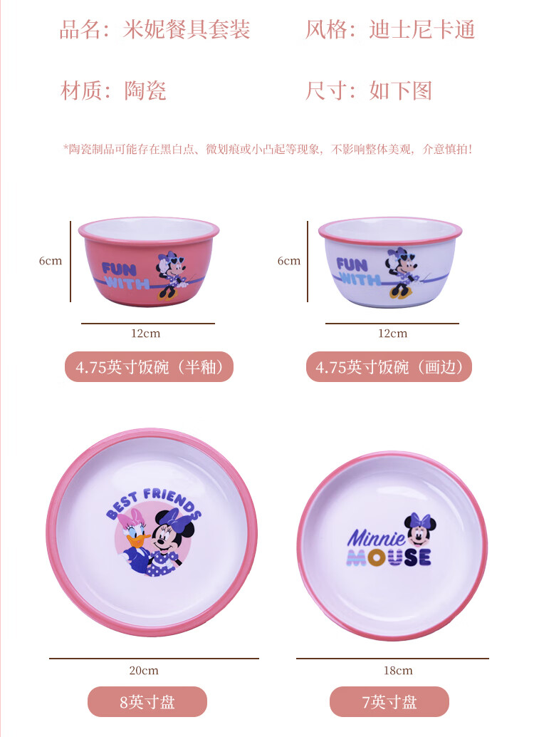 迪士尼 米妮与黛西二人食10件套陶瓷餐具礼盒装WADSN-0080TCTE 6974992110631