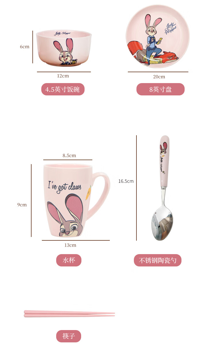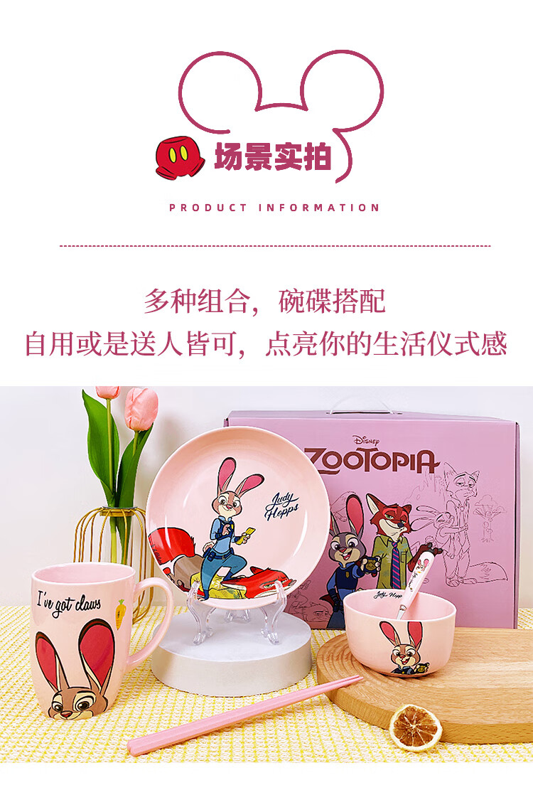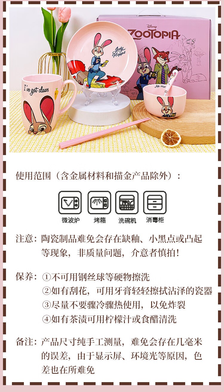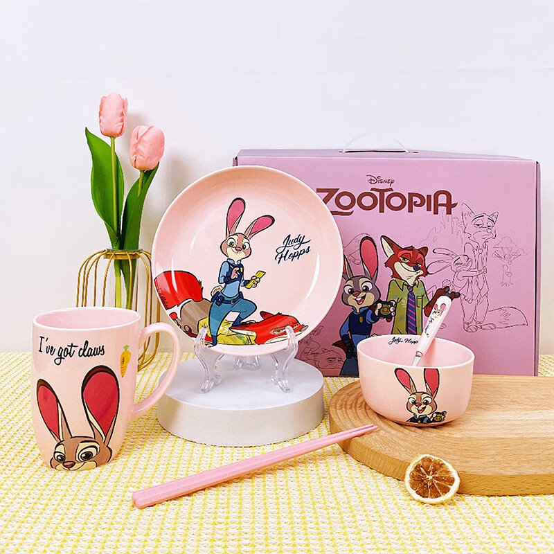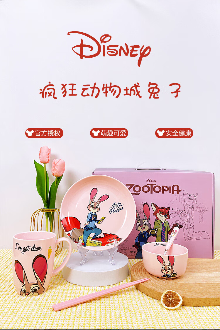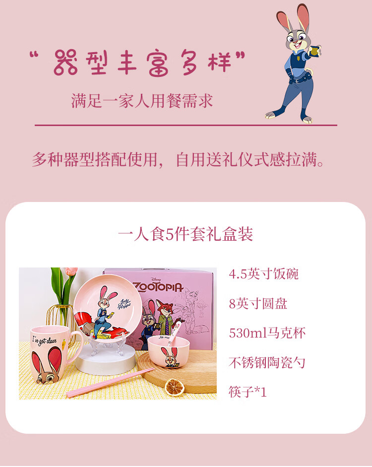商品名称:迪士尼 疯狂动物城兔子一人食5件套陶瓷餐具礼盒装 WADSN-005TZZD 6974992111126