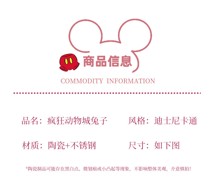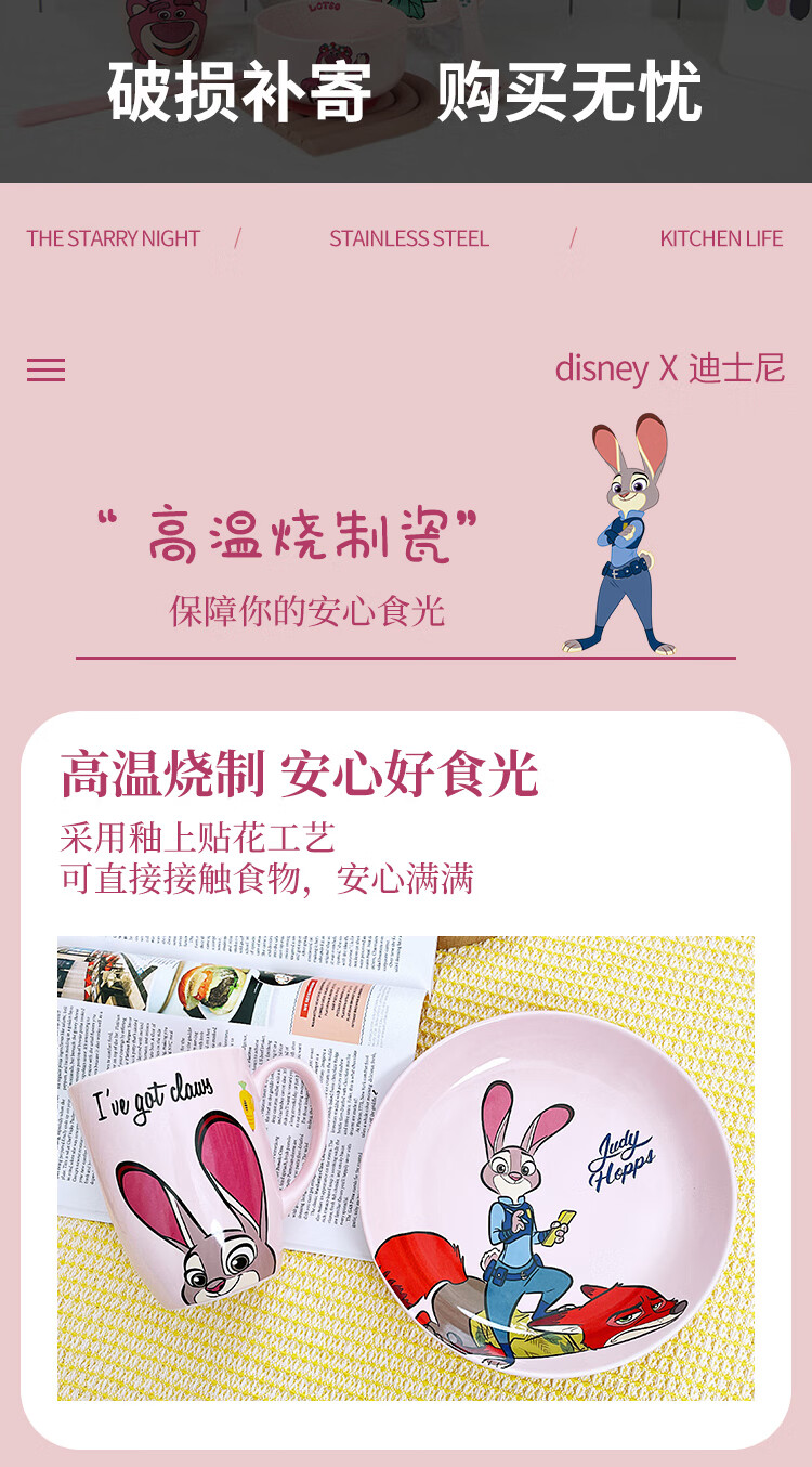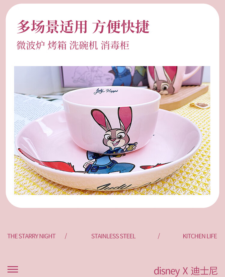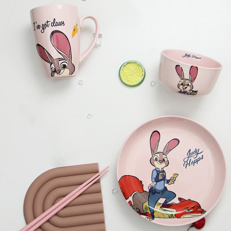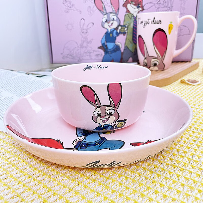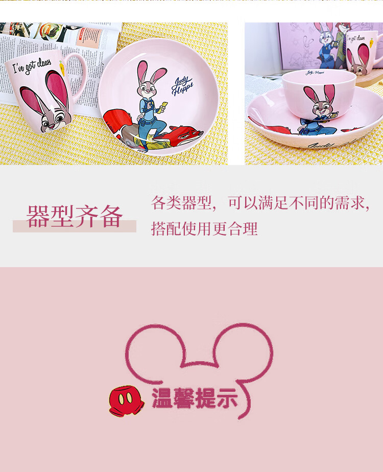 商品名称:迪士尼 疯狂动物城兔子一人食5件套陶瓷餐具礼盒装 WADSN-005TZZD 6974992111126