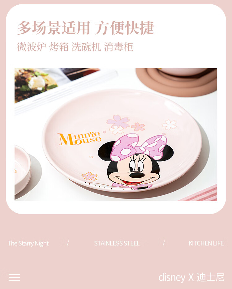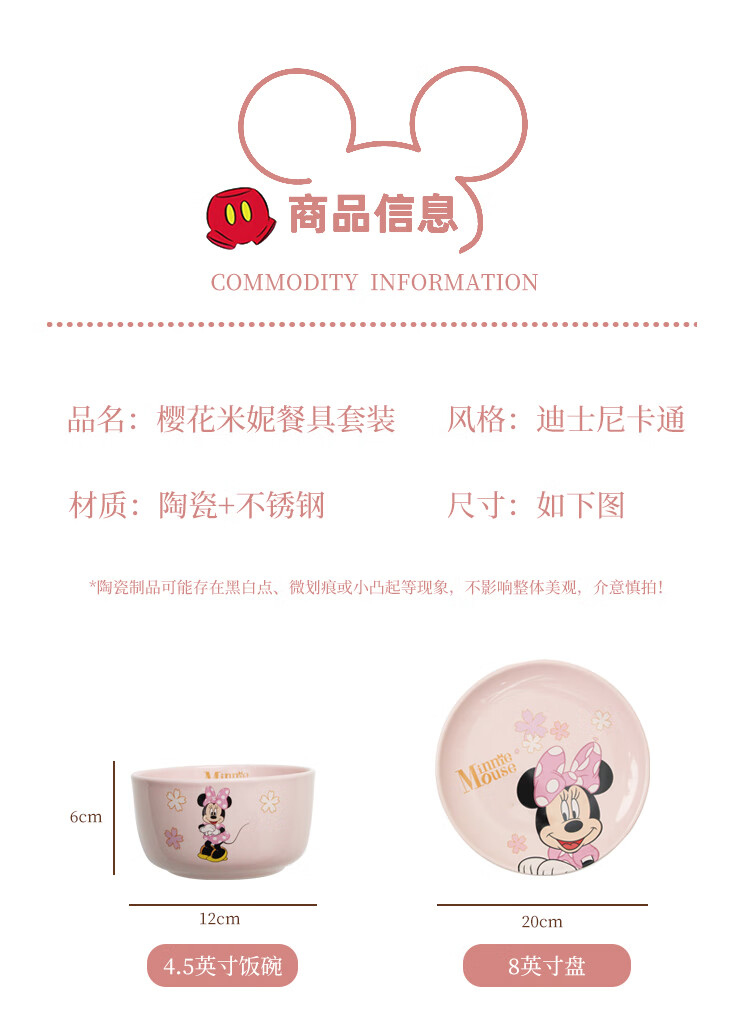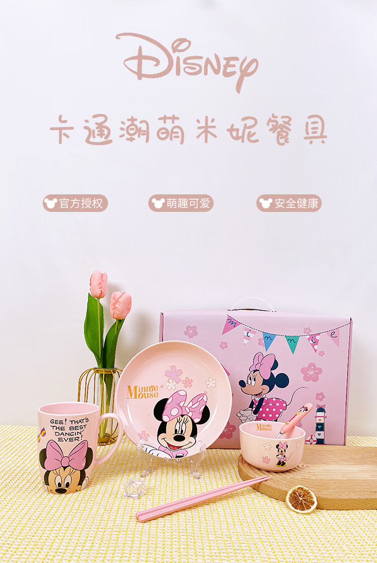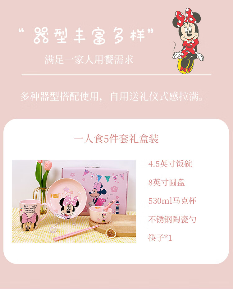 商品名称:迪士尼 米妮樱花一人食5件套陶瓷餐具礼盒装 WADSN-005YHMN 6974992111058