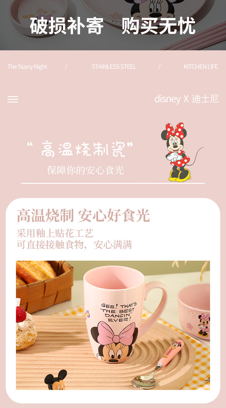 迪士尼 米妮樱花一人食5件套陶瓷餐具礼盒装 WADSN-005YHMN 6974992111058