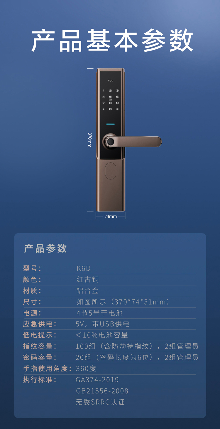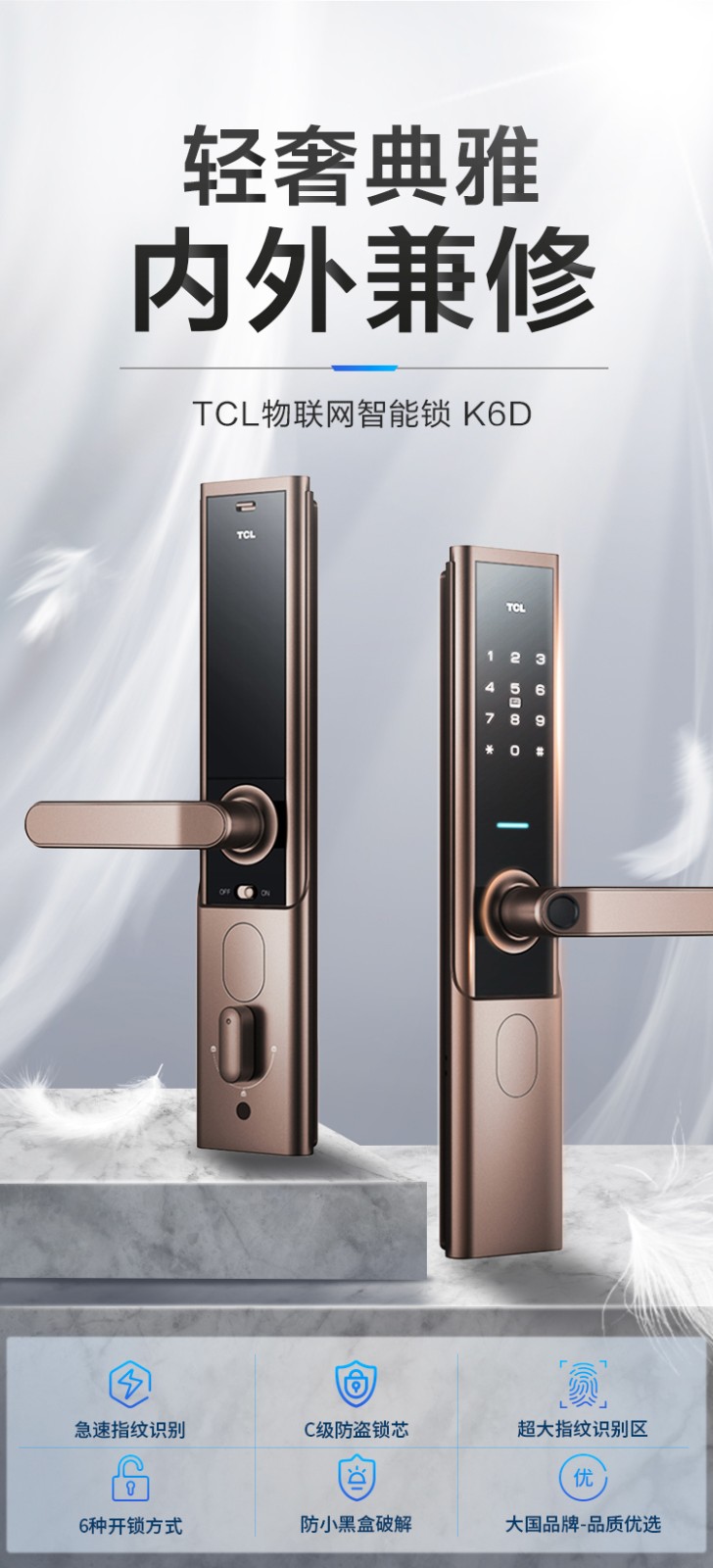 商品名称:TCL 智能门锁K6D 半自动锁体智能门锁