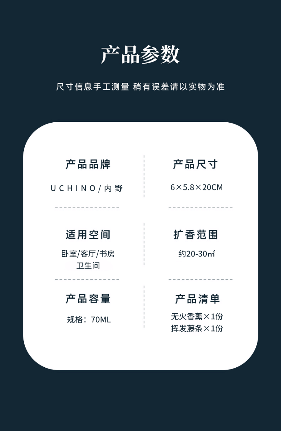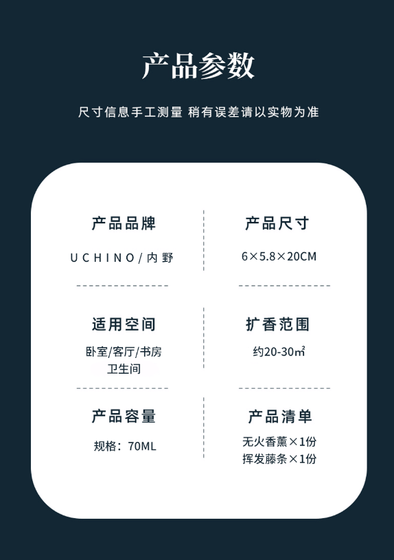 商品名称:UCHINO/内野无火香氛70ml XSN0307-W