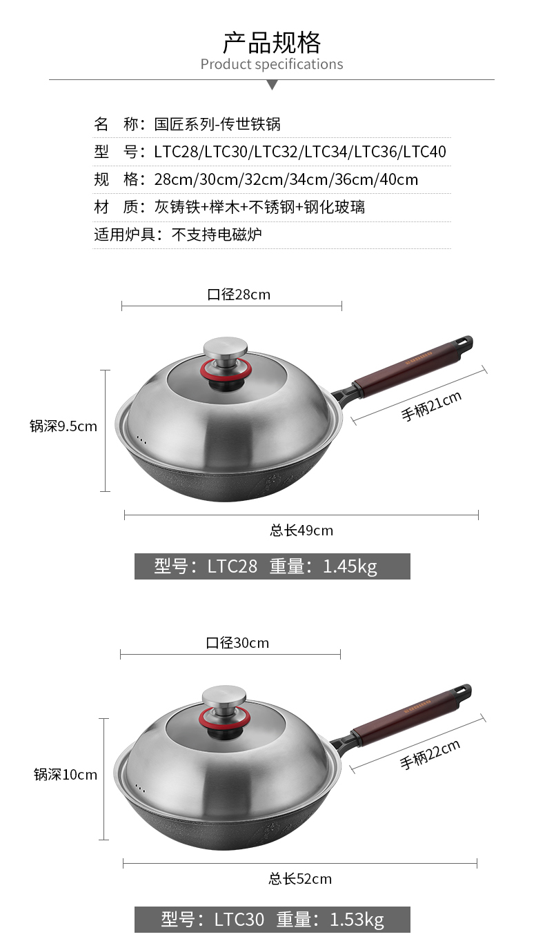 欧美达 国匠系列-传世铁锅40CM LTC40 6941334152529