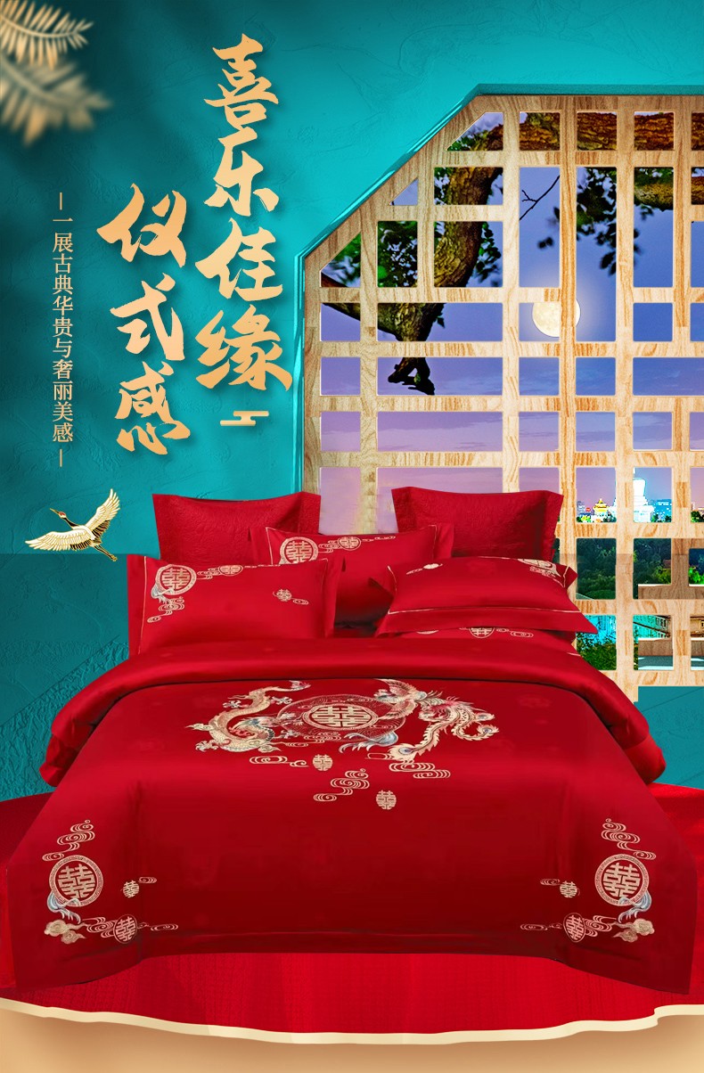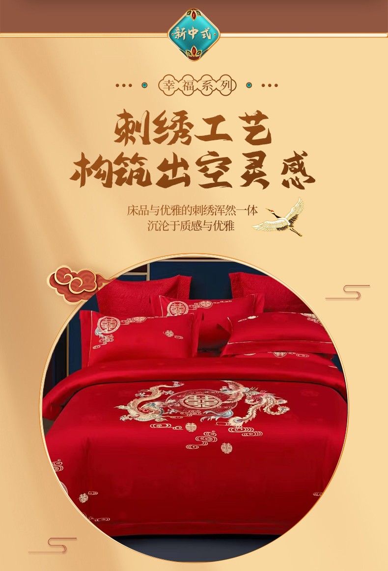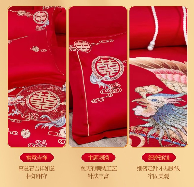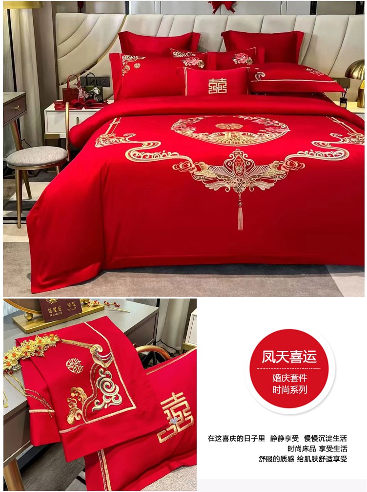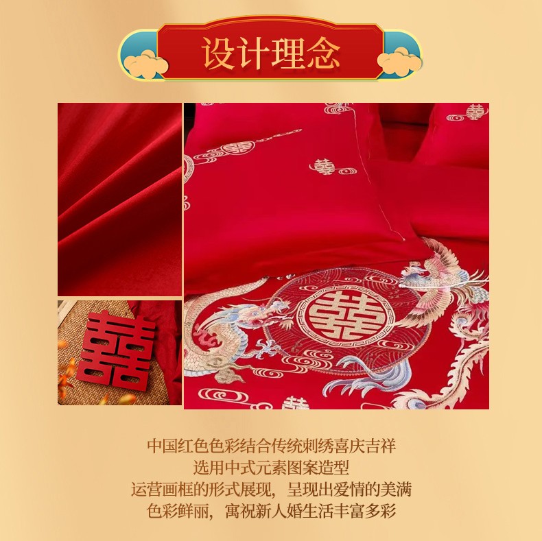 悠梦嘉居 YJ-13268 床裙款婚庆四件套 200*230CM 凤天喜运(内蒙、新疆、西藏、青海、宁夏、甘肃运费另算)
