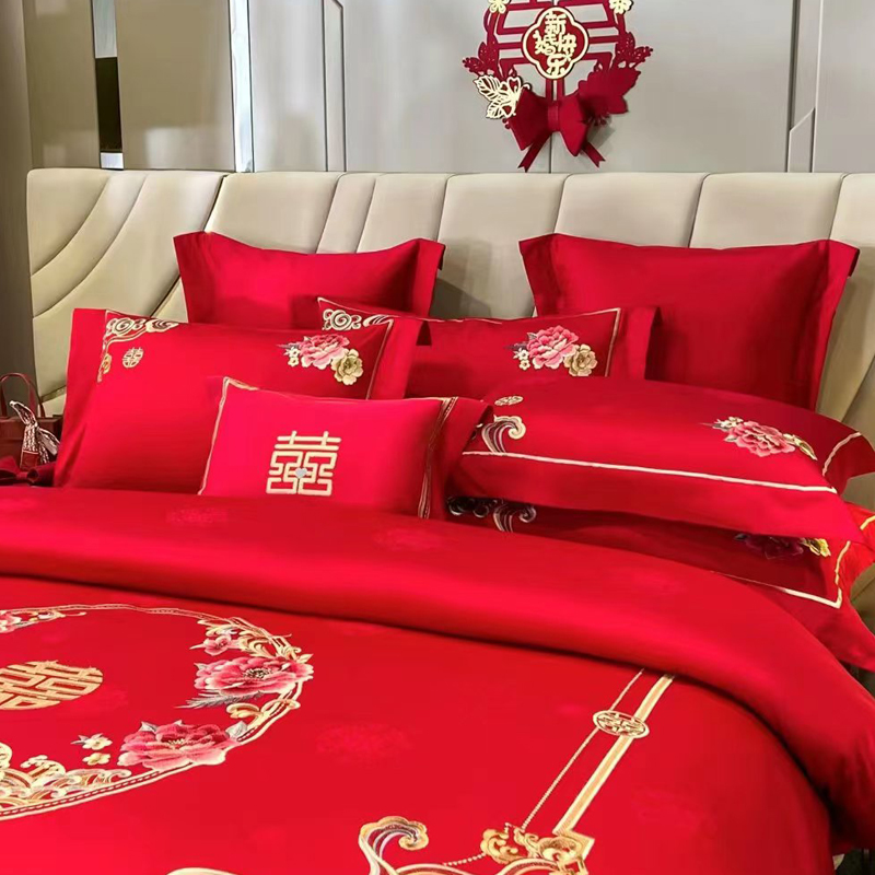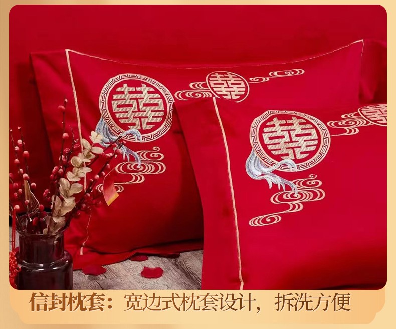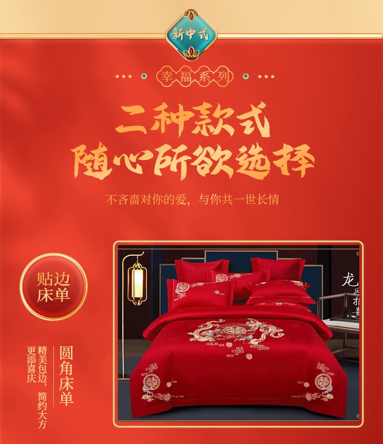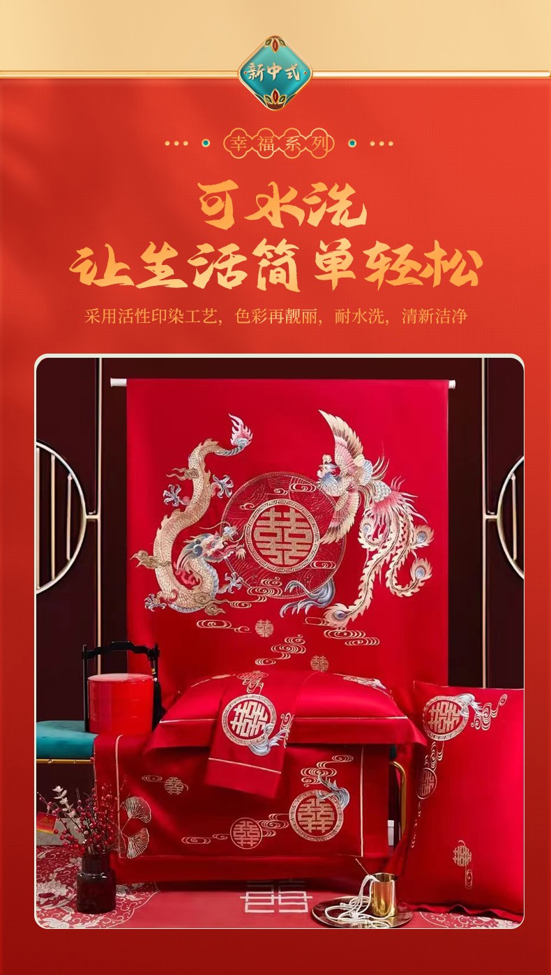 悠梦嘉居 YJ-13268 床裙款婚庆四件套 200*230CM 凤天喜运(内蒙、新疆、西藏、青海、宁夏、甘肃运费另算)