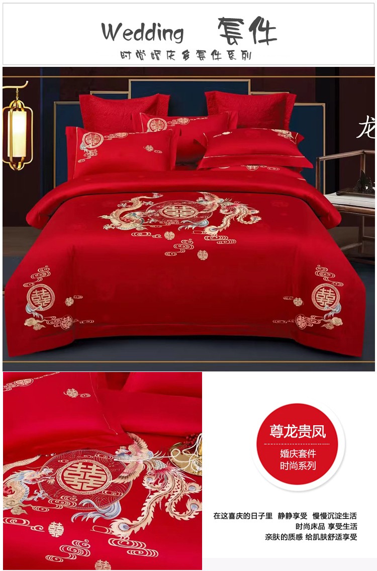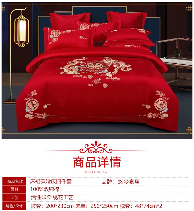 商品名称:悠梦嘉居 YJ-13268 床裙款婚庆四件套 200*230CM 凤天喜运(内蒙、新疆、西藏、青海、宁夏、甘肃运费另算)