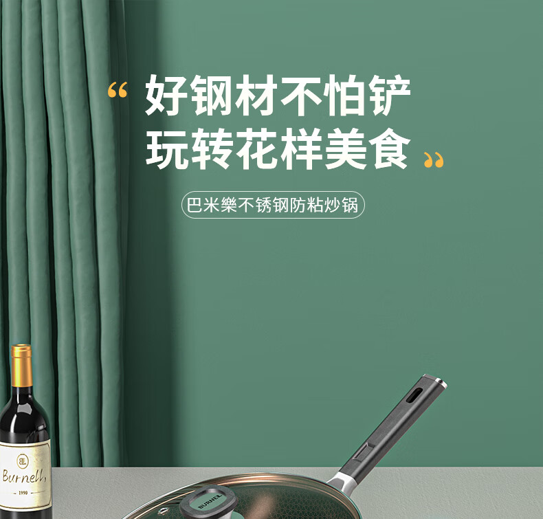 巴米乐 不锈钢防粘炒锅32cm BNL-G200 6975222361267