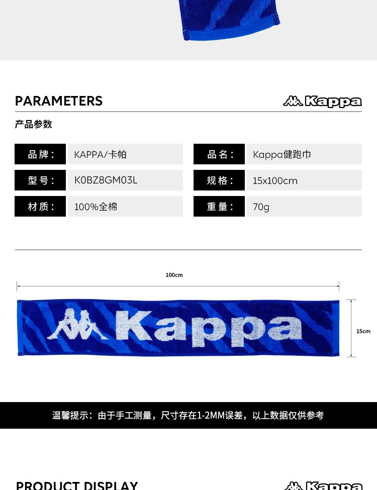 商品名称:Kappa 健跑巾100%全棉 15*100cm K0BZ8GM03L