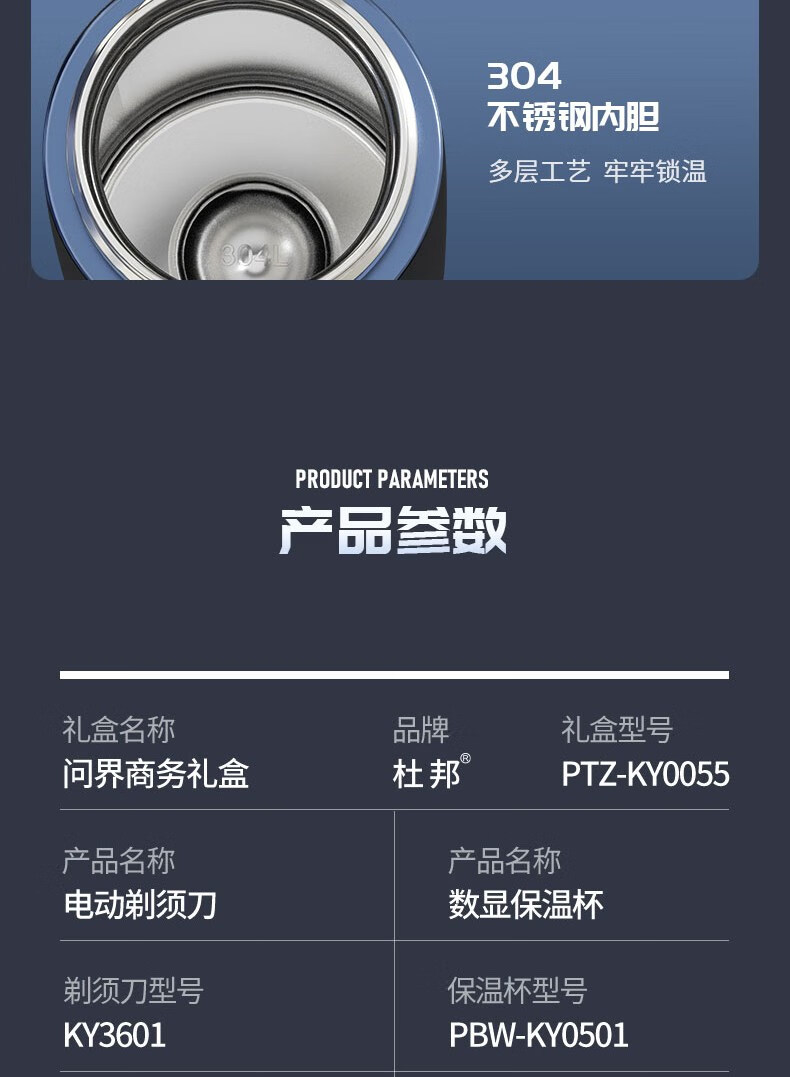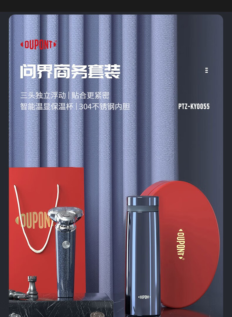商品名称:杜邦 电动剃须刀+数显保温杯套装 PTZ-KY0055