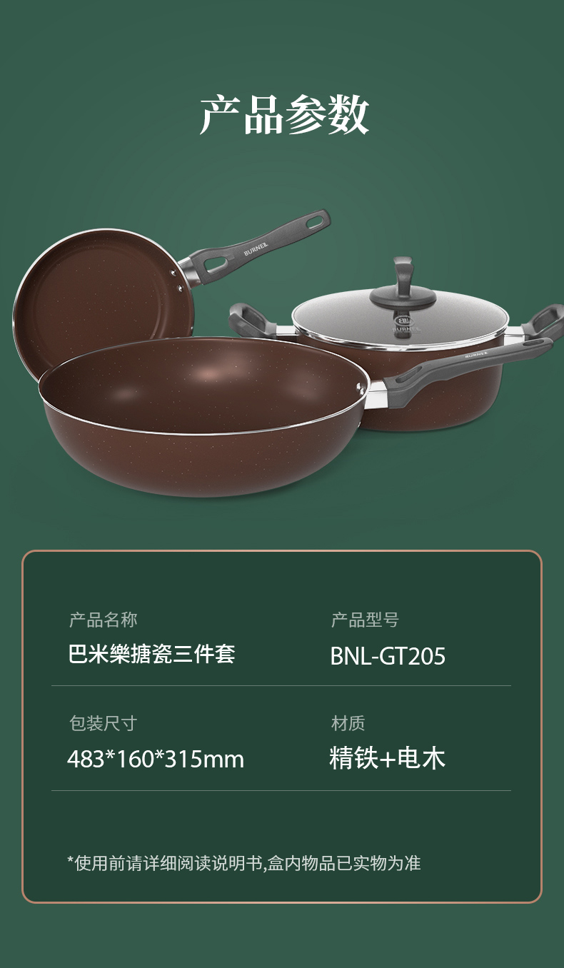 商品名称:巴米乐 搪瓷三件套炒锅+煎锅+汤锅 BNL-GT205 6975222360758