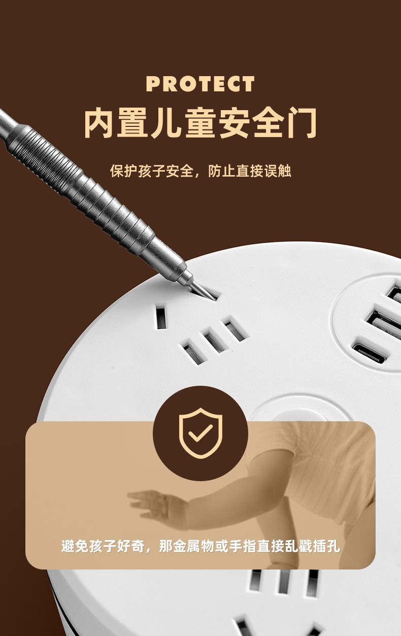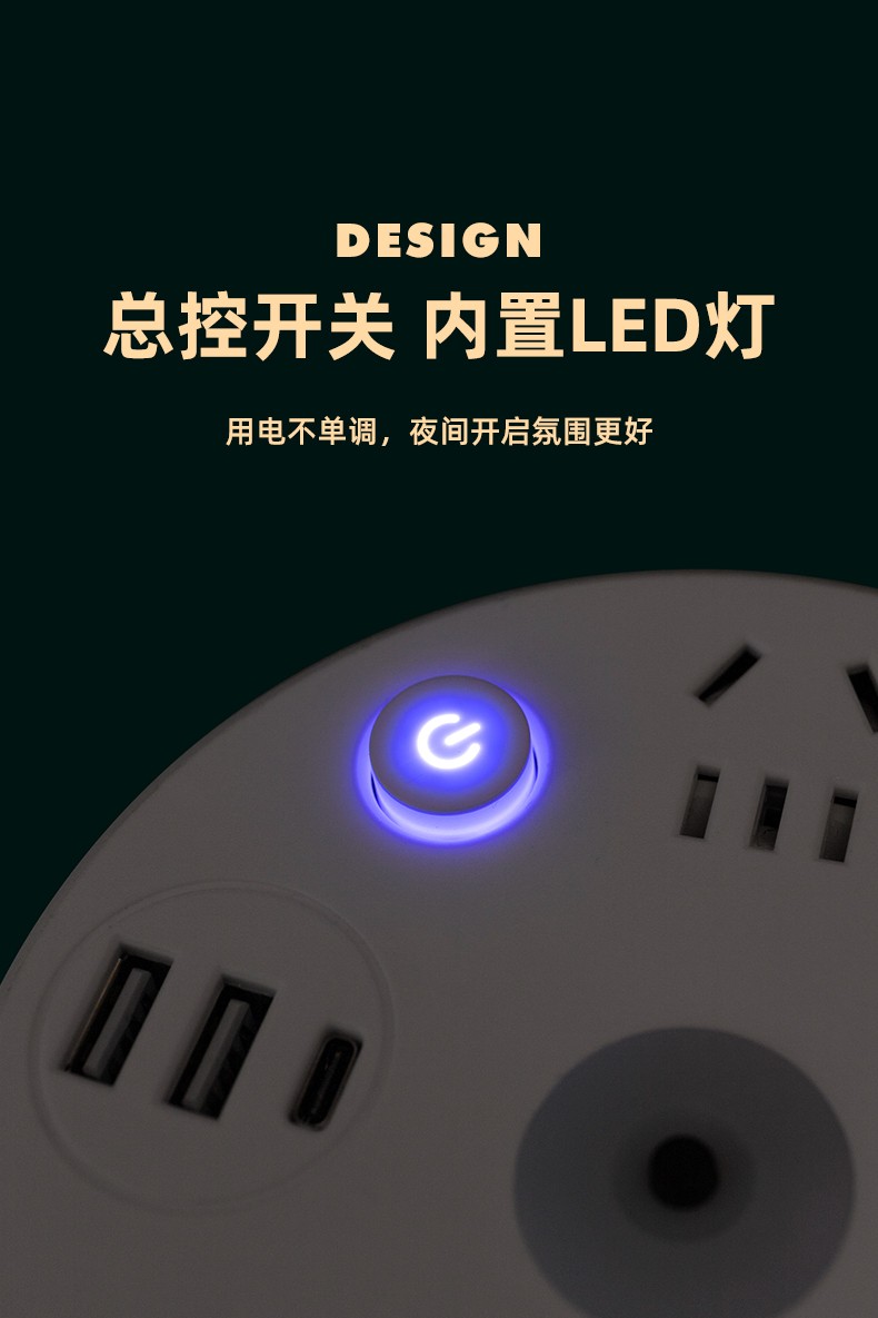 亰维渡 收纳5位 1.9米插排/插线板/排插/桌面插座总控