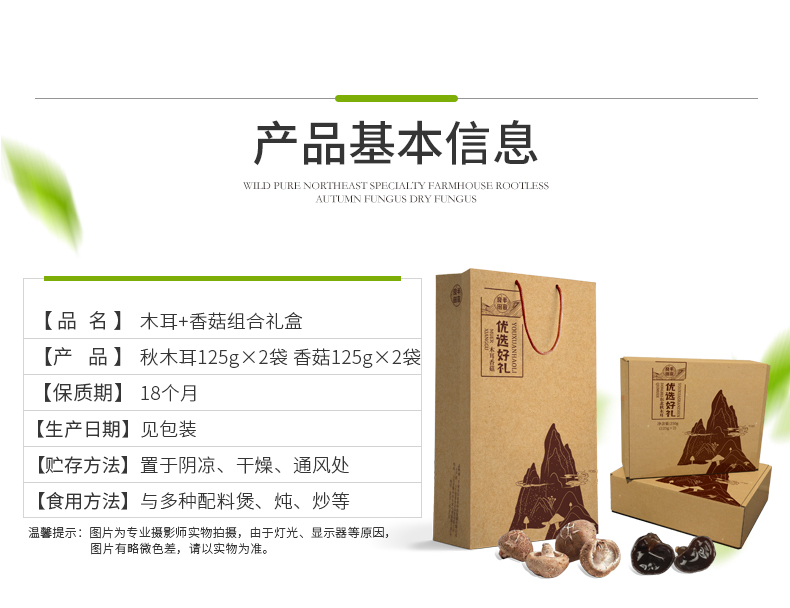 商品名称:半亩良田 优选 木耳+香菇组合礼盒 500g