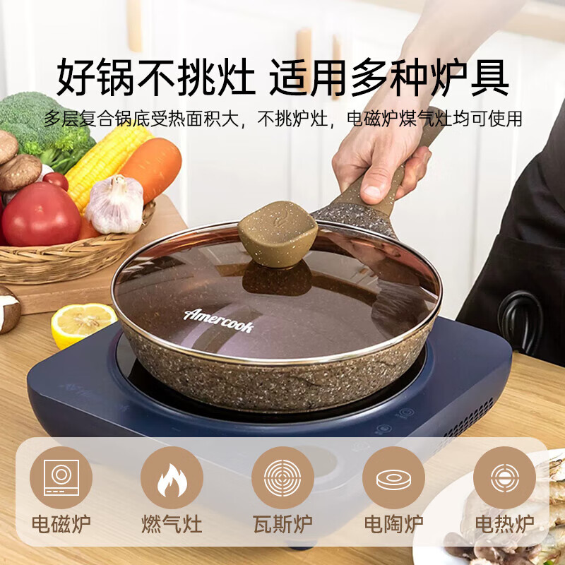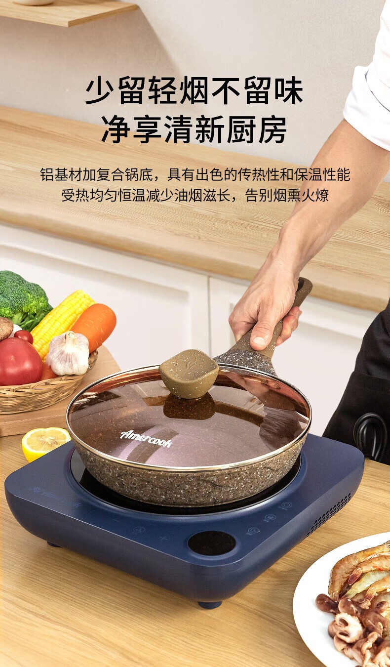 阿米尔 平底锅煎锅AC0150201.26BN-L 咖啡色+锅盖 Ø26*h5.8cm 6974898470280