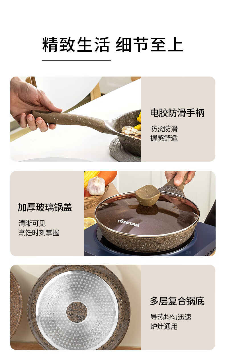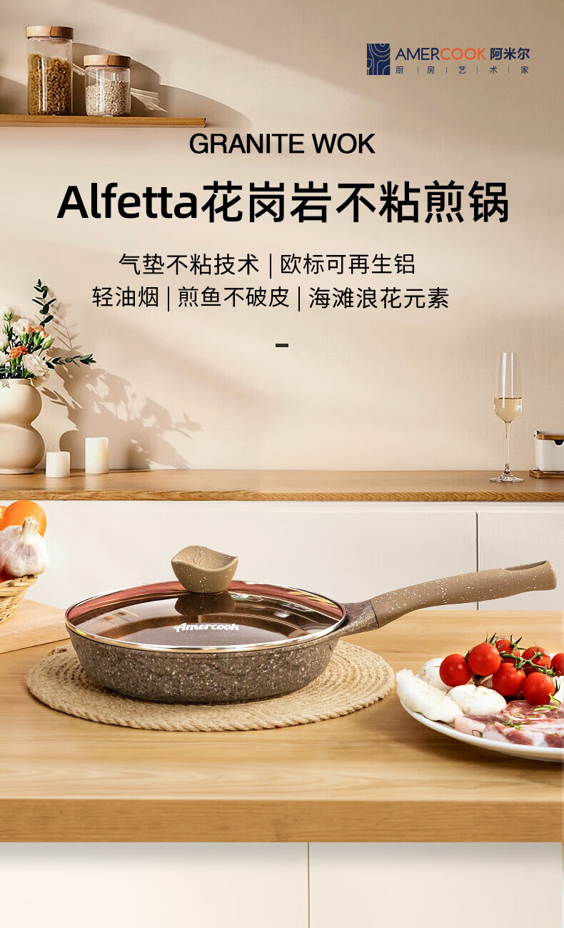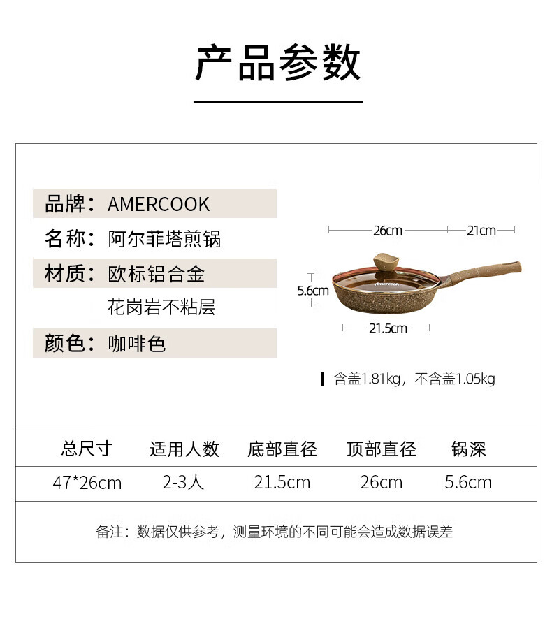 商品名称:阿米尔 平底锅煎锅AC0150201.26BN-L 咖啡色+锅盖 Ø26*h5.8cm 6974898470280