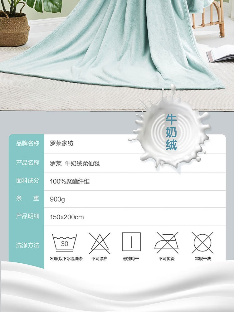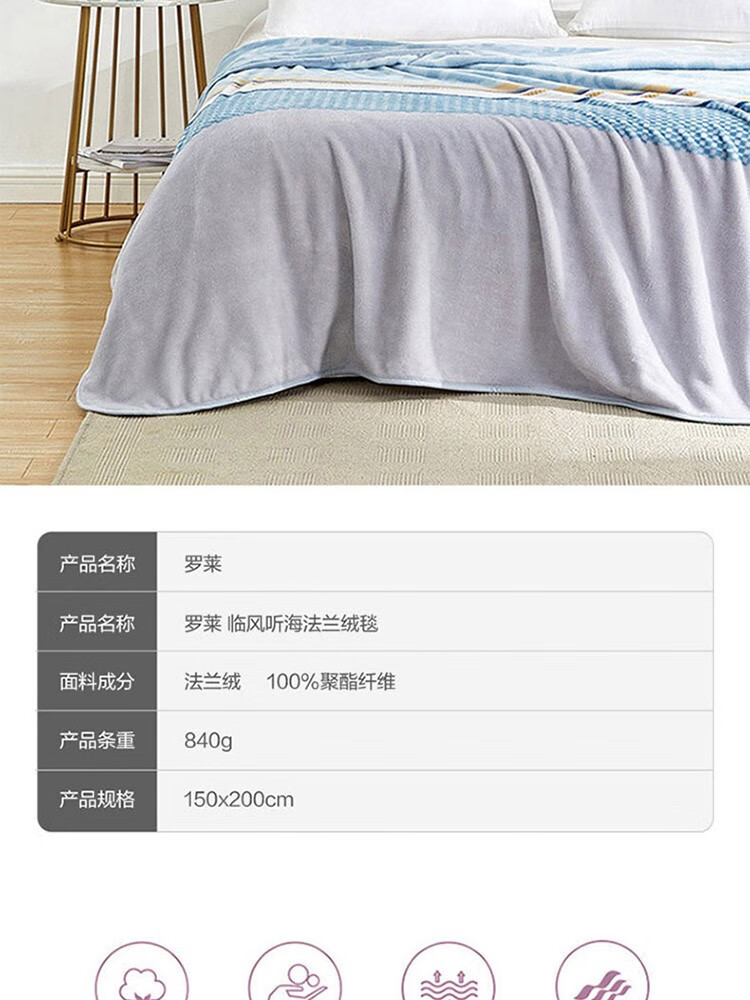 商品名称:罗莱 临风听海法兰绒毯(蓝色) 180×200cm×280 6901974128797 偏远另加运费