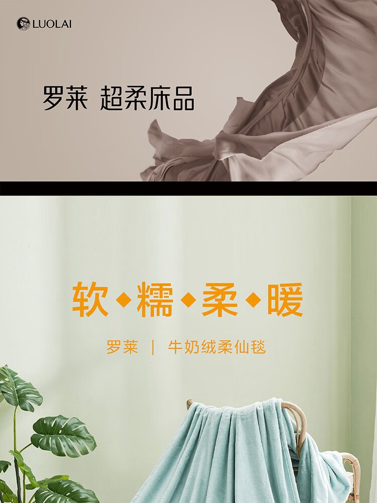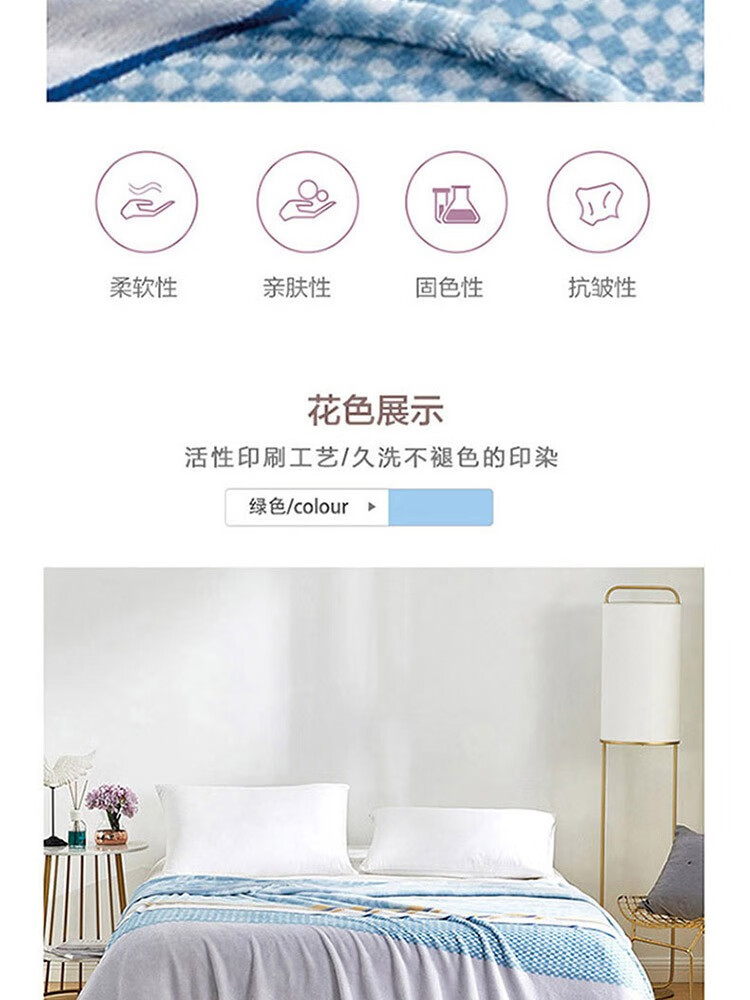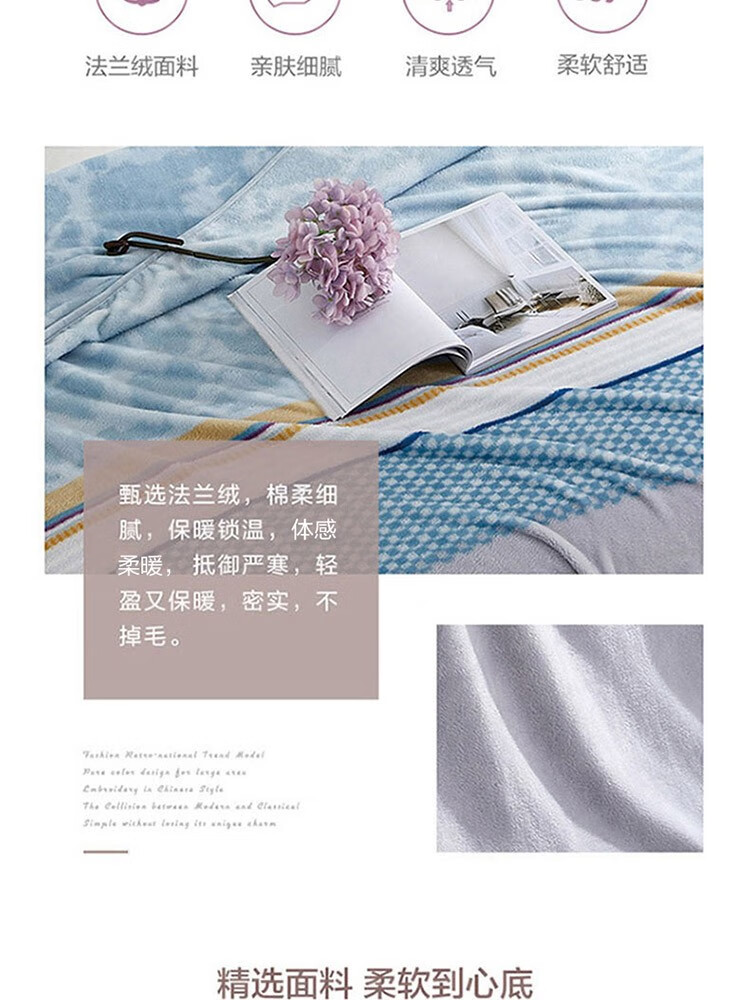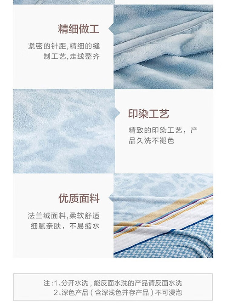 罗莱 临风听海法兰绒毯(蓝色) 180×200cm×280 6901974128797 偏远另加运费