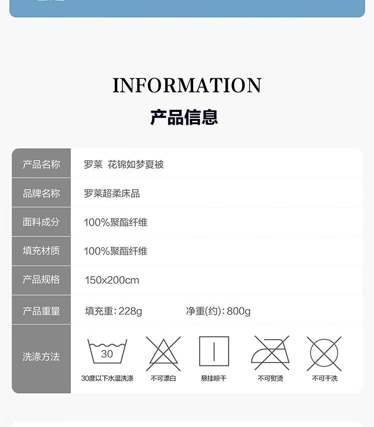 商品名称:罗莱 花锦如梦夏被150*200cm 6901974294249 偏远另加运费