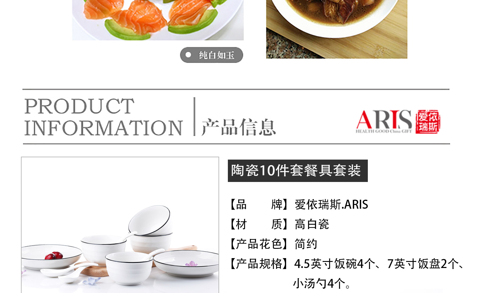 商品名称:爱依瑞斯 简约10头陶瓷餐具 AS-D1015H(新疆、西藏、港澳台不发货)
