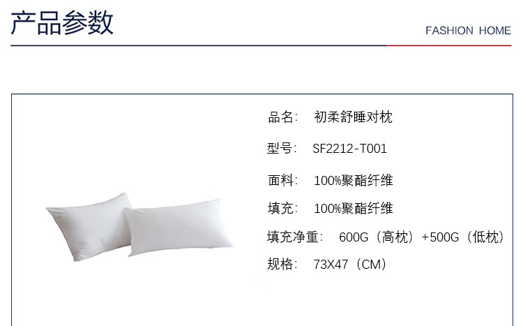 商品名称:红秀世纺 初柔舒睡对枕 73x47(cm) SF2212-T001