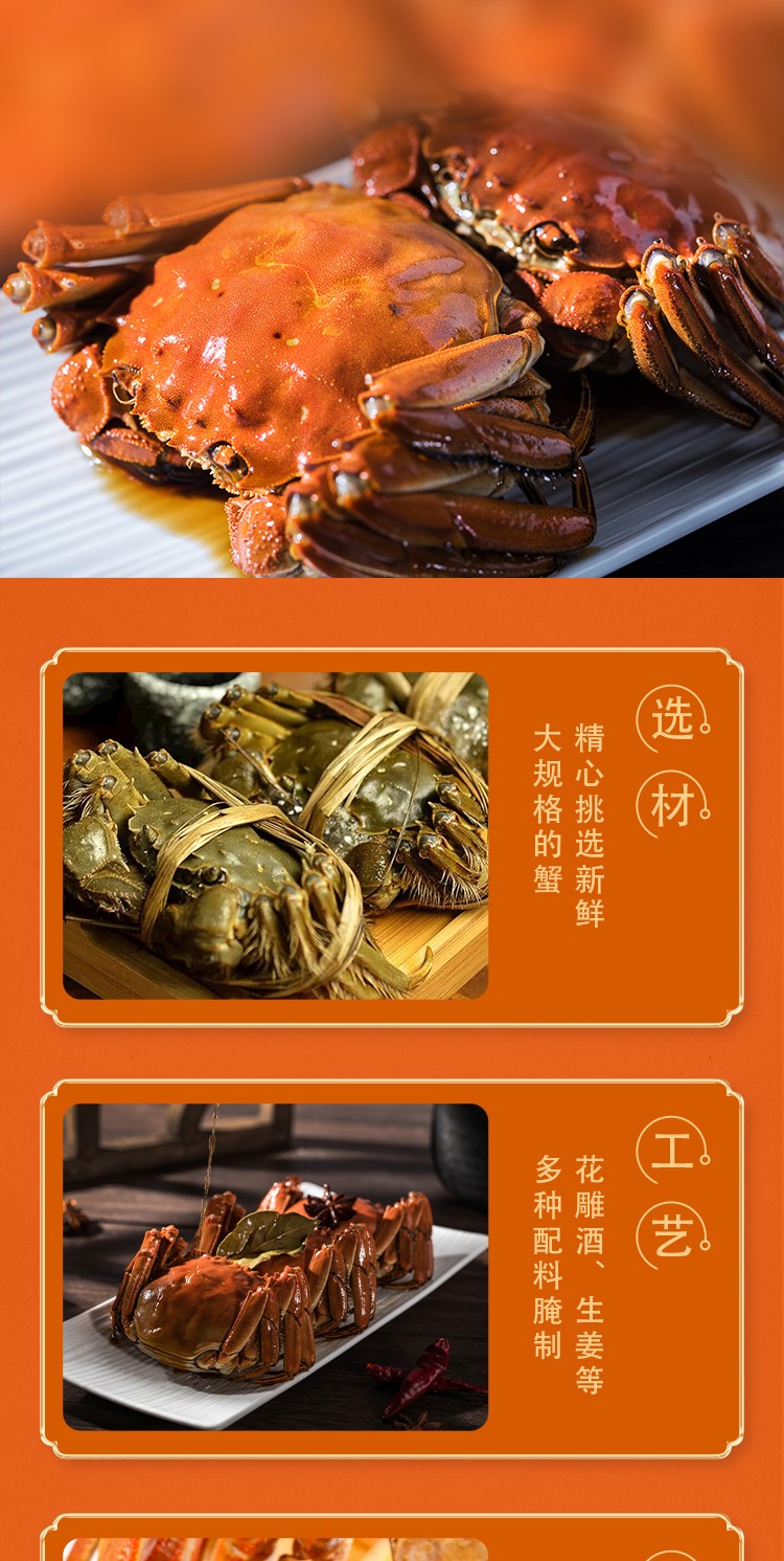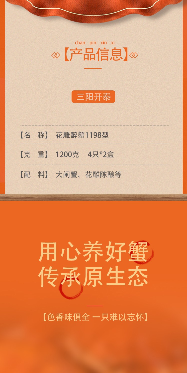 商品名称:旎旎贝师傅 花雕熟醉蟹1198型1200g(4只装*2盒)