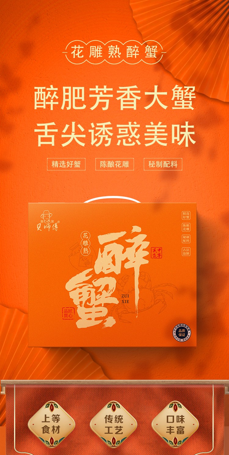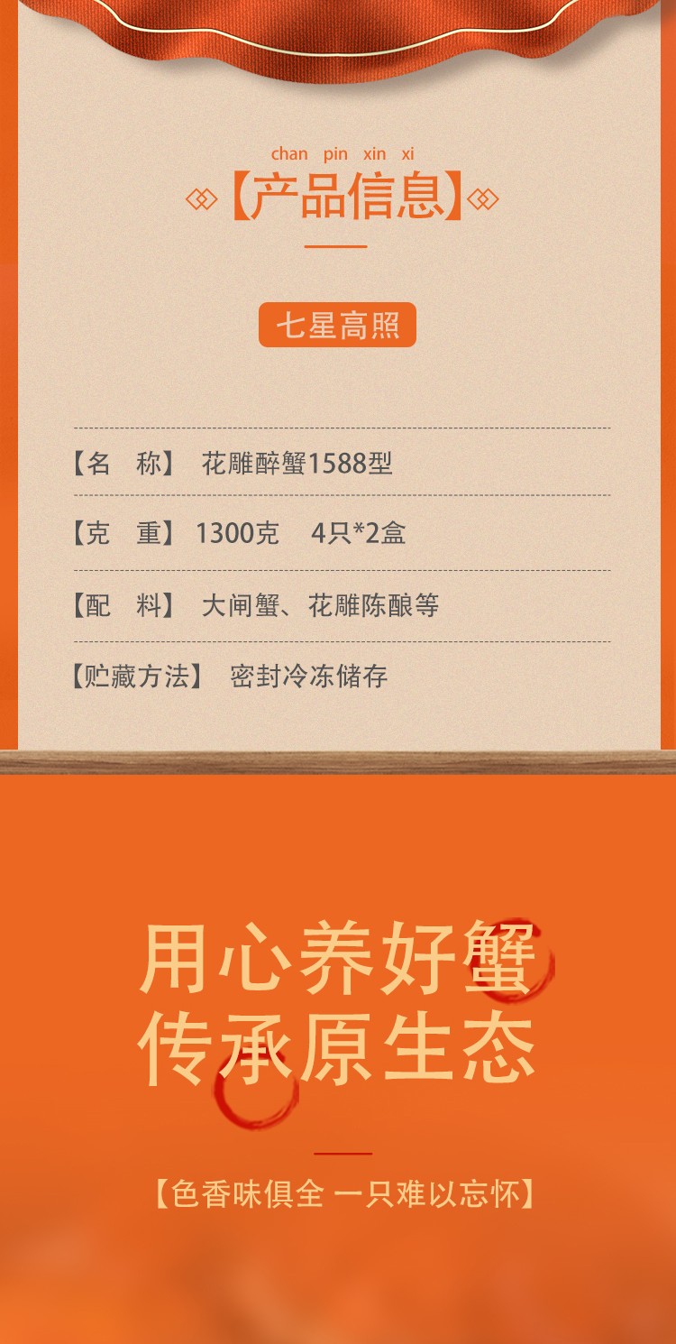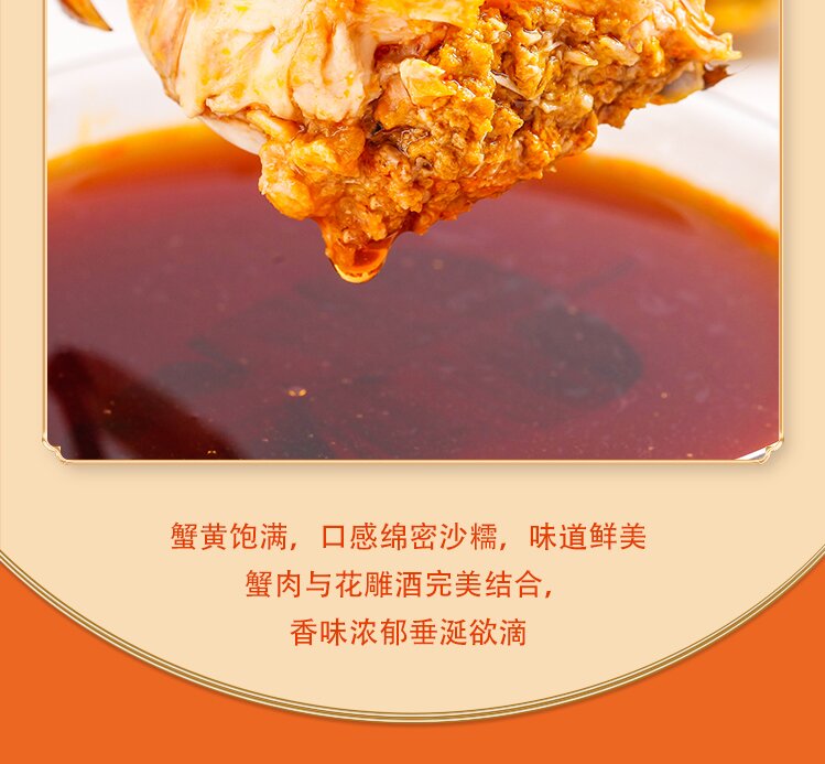 商品名称:旎旎贝师傅 花雕熟醉蟹1588型1300g(4只装*2盒)