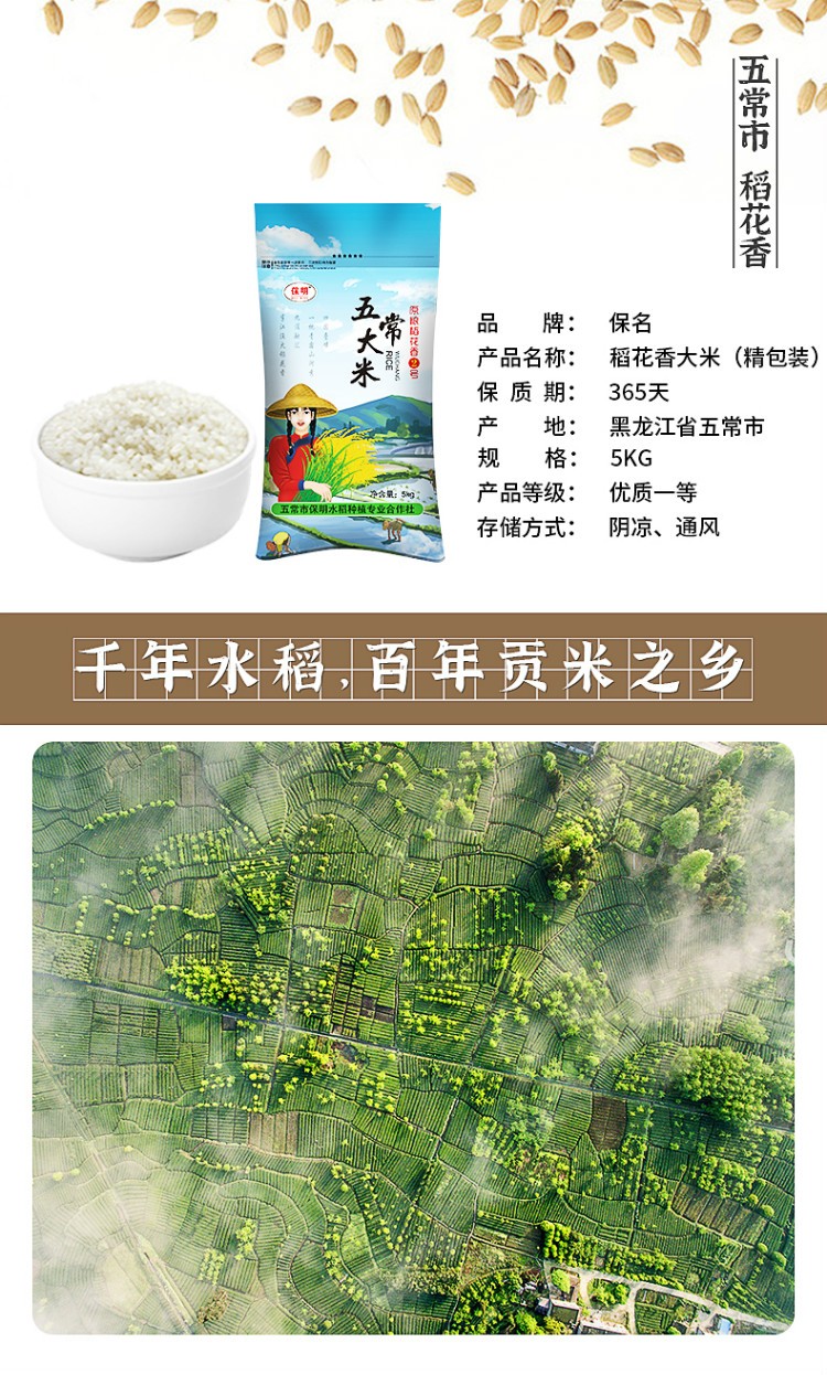 商品名称:保明五常大米原粮稻花香2号 五常市稻米合作社种植5KG