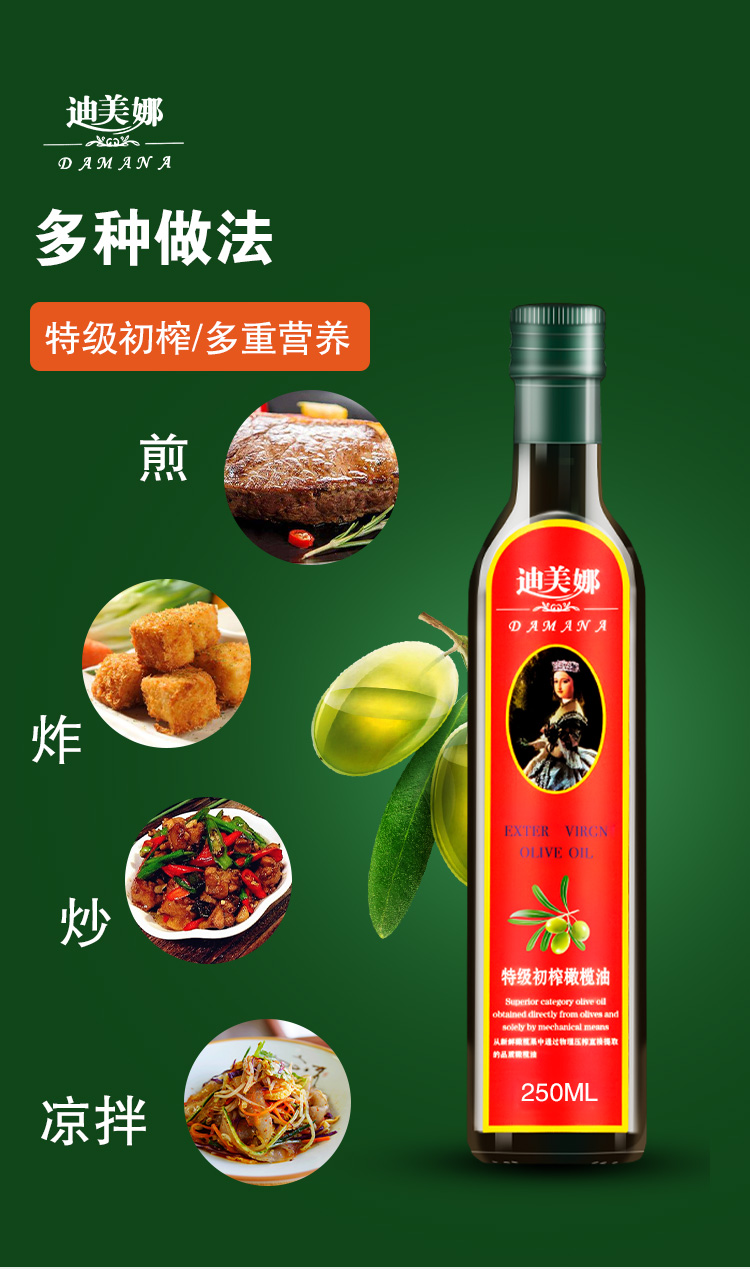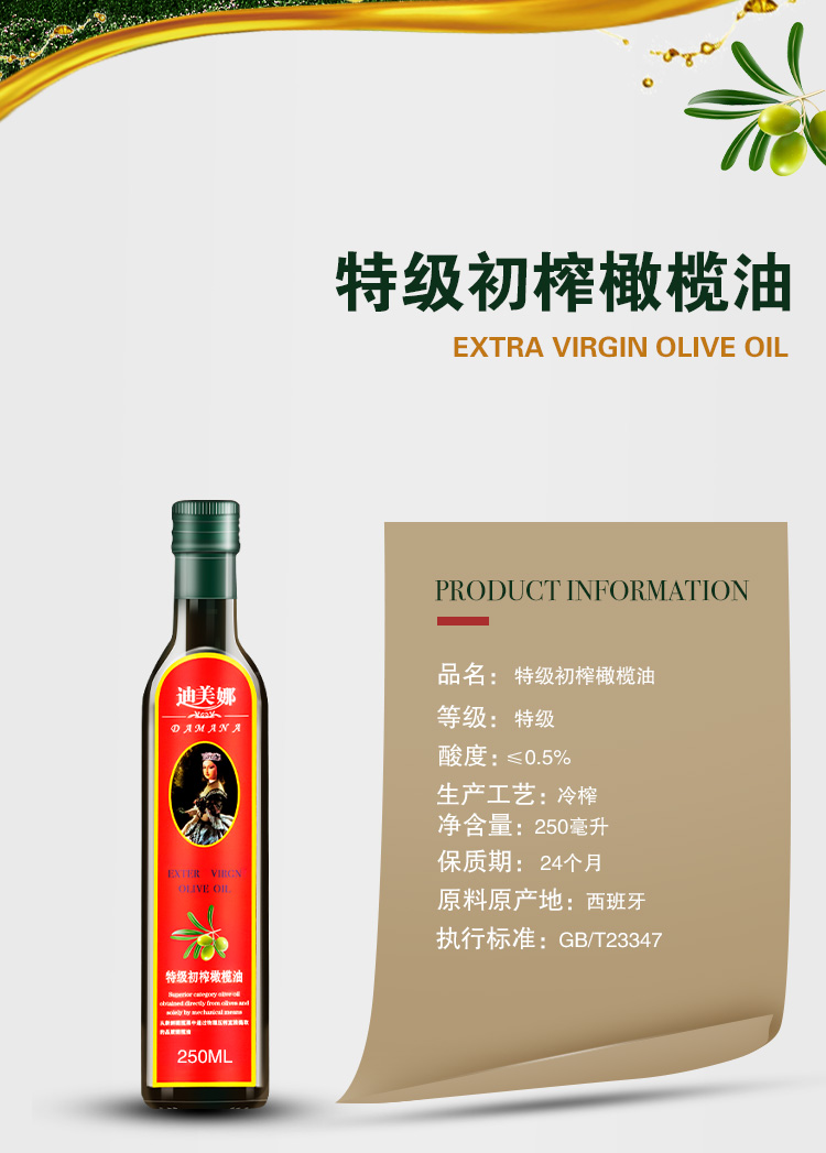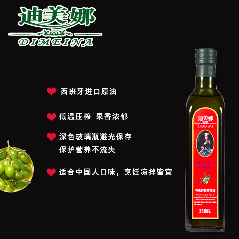 商品名称:迪美娜特级初榨橄榄油裸瓶 250毫升