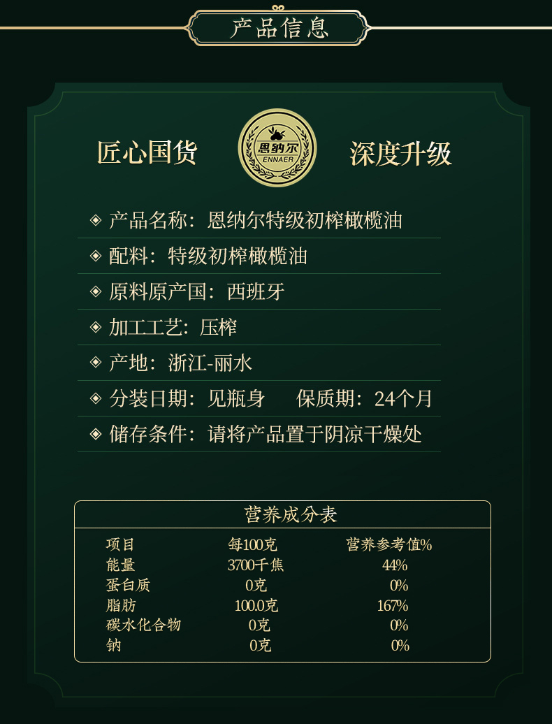 商品名称:恩纳尔特级初榨橄榄油 750ml*2瓶 6974802980102 新疆西藏内蒙青海宁夏不发货
