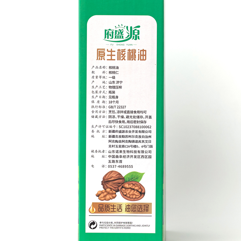 商品名称:府盛源 原生核桃油 250ml*2瓶礼盒