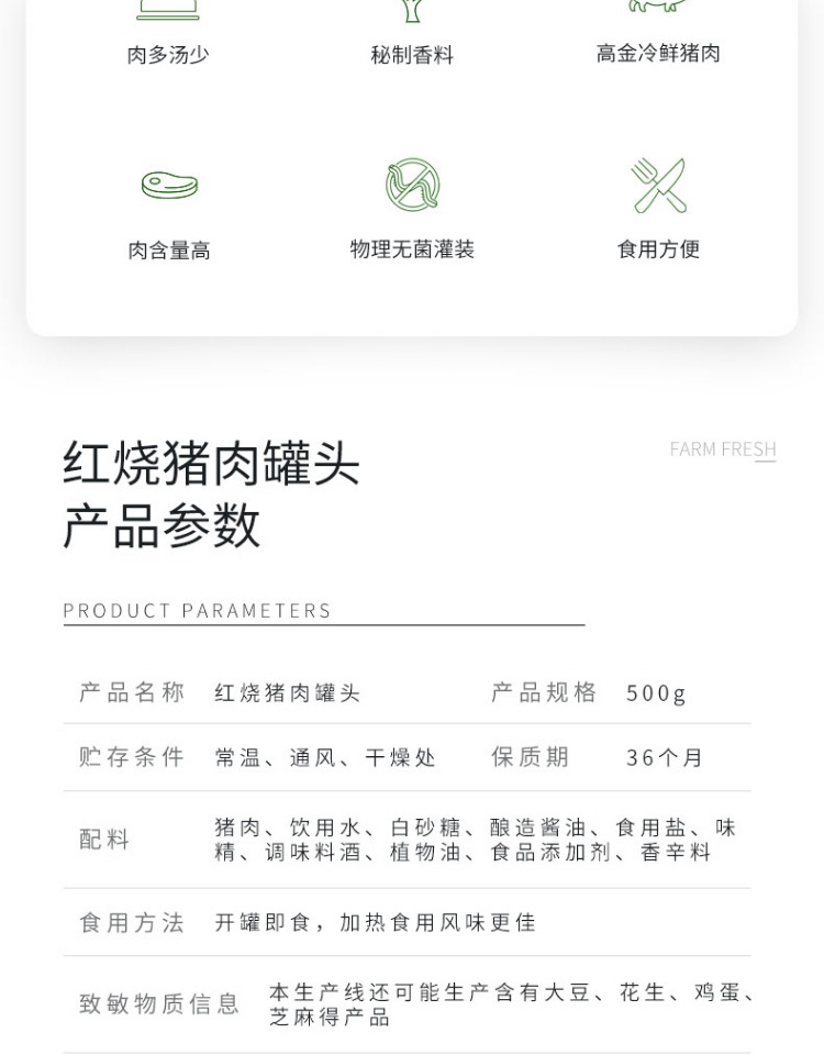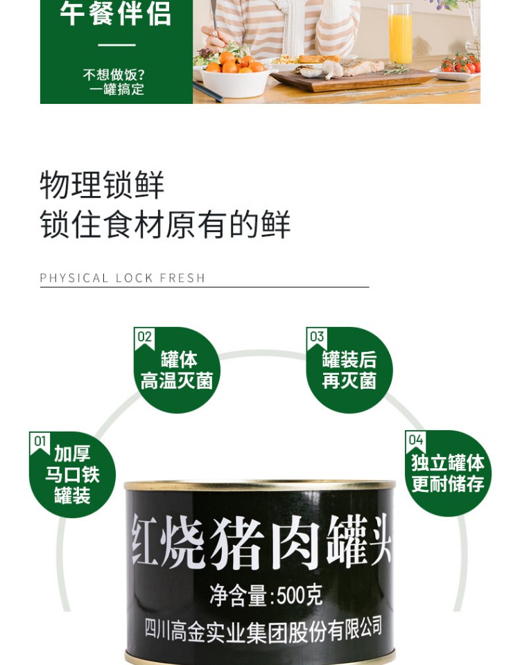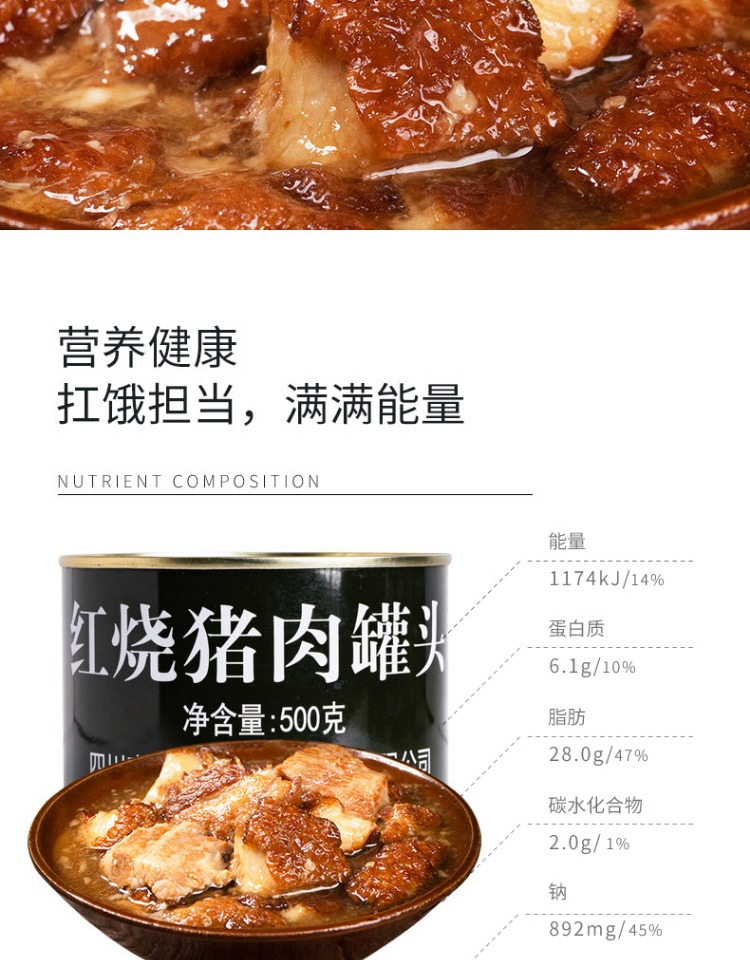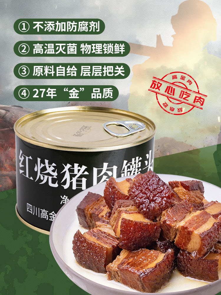 商品名称:高金食品 军标红烧肉500g(75%加瘦肉)*3听 6937495120798
