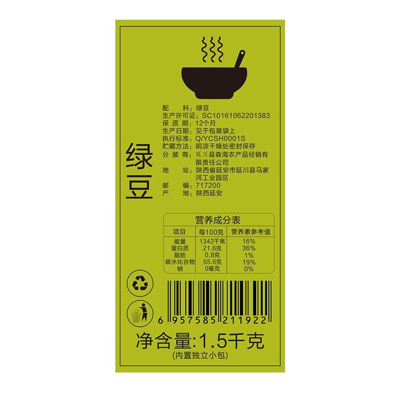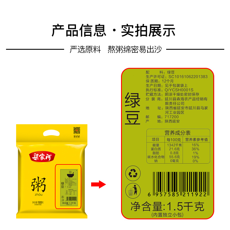 商品名称:梁家河 绿豆粥 1.5kg