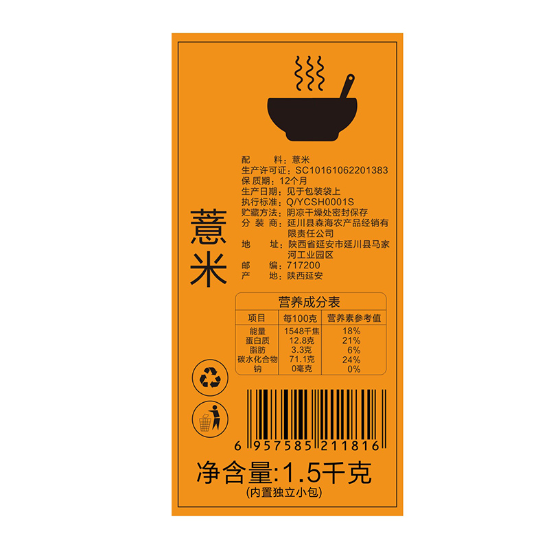 商品名称:梁家河 薏米粥 1.5kg
