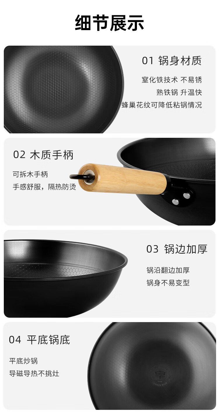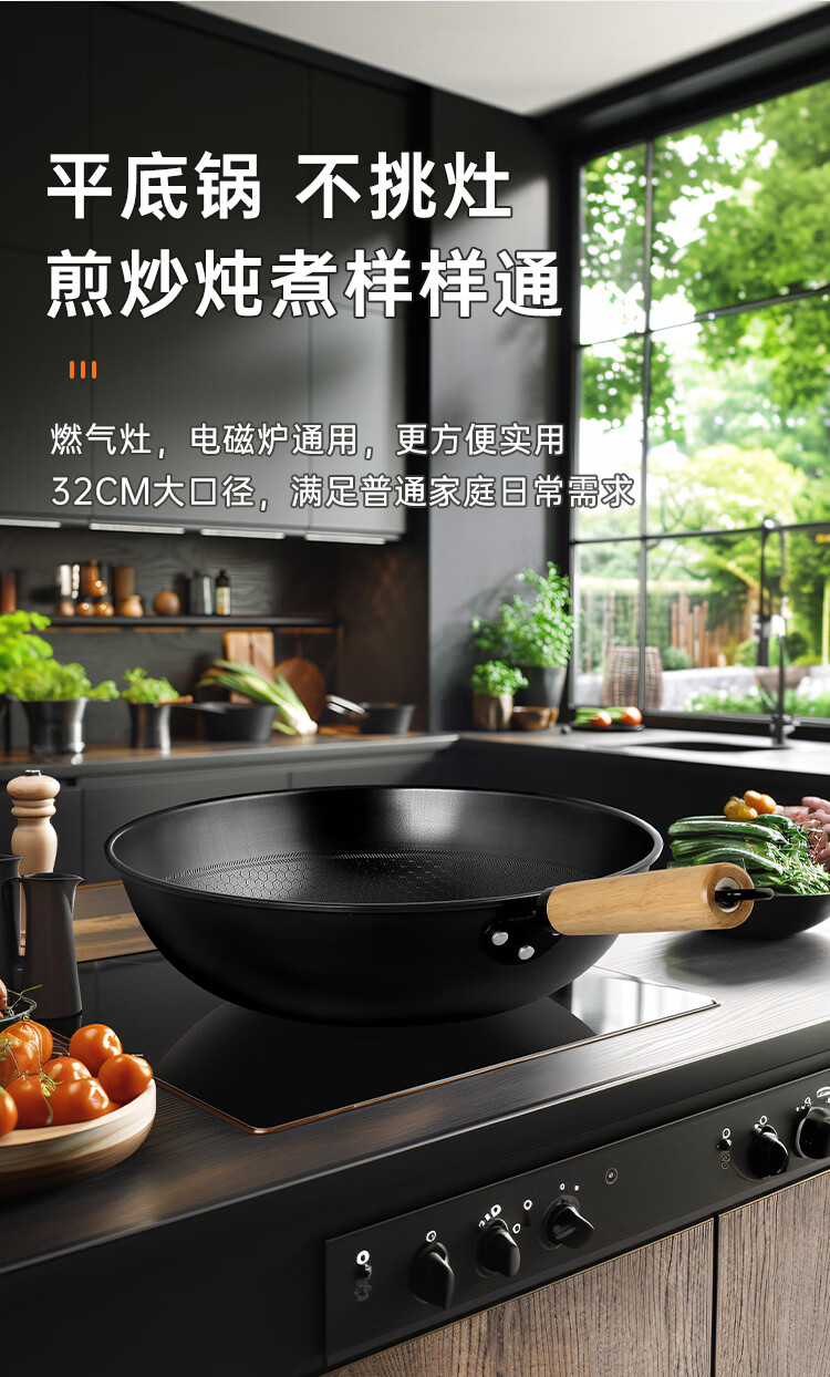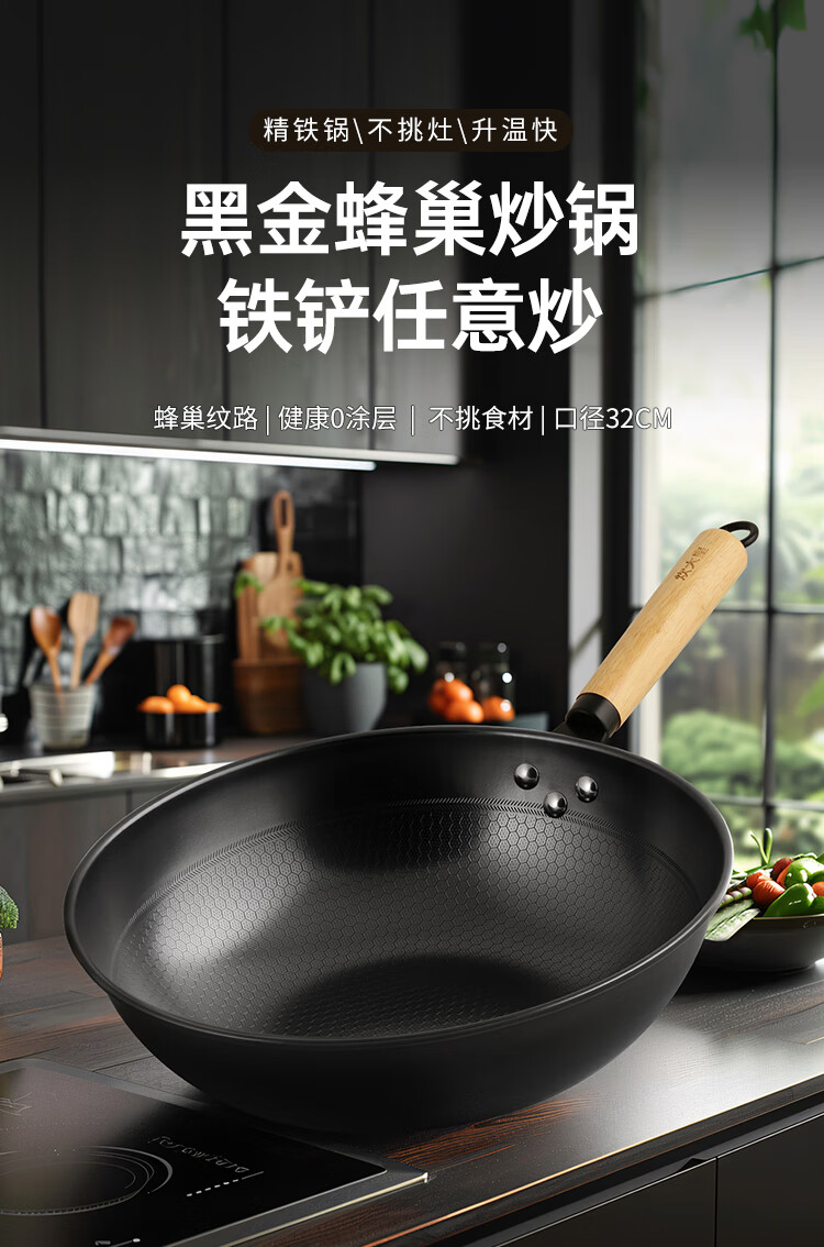 炊大皇 黑金蜂巢精铁炒锅32cm CG32HJ 6921761873969