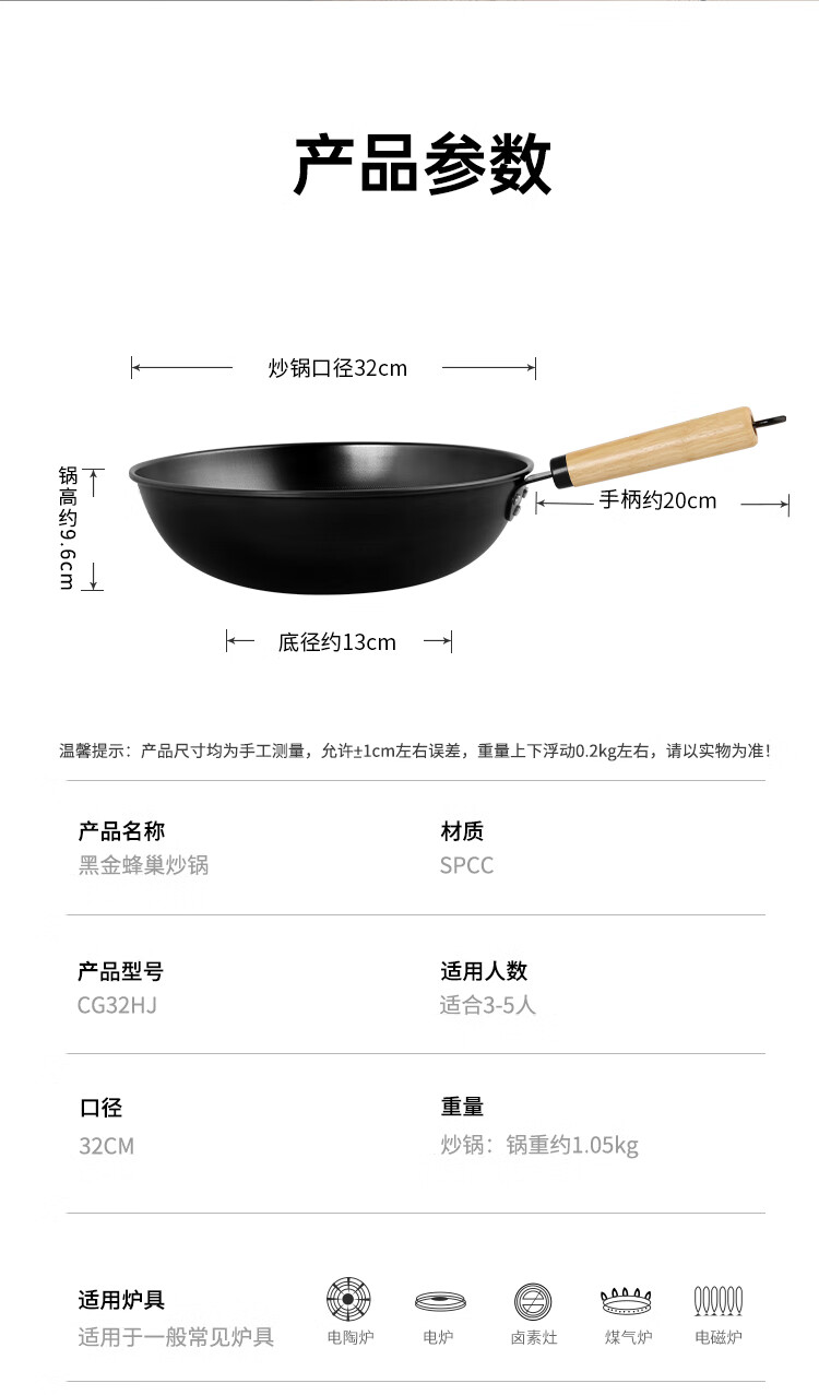 商品名称:炊大皇 黑金蜂巢精铁炒锅32cm CG32HJ 6921761873969