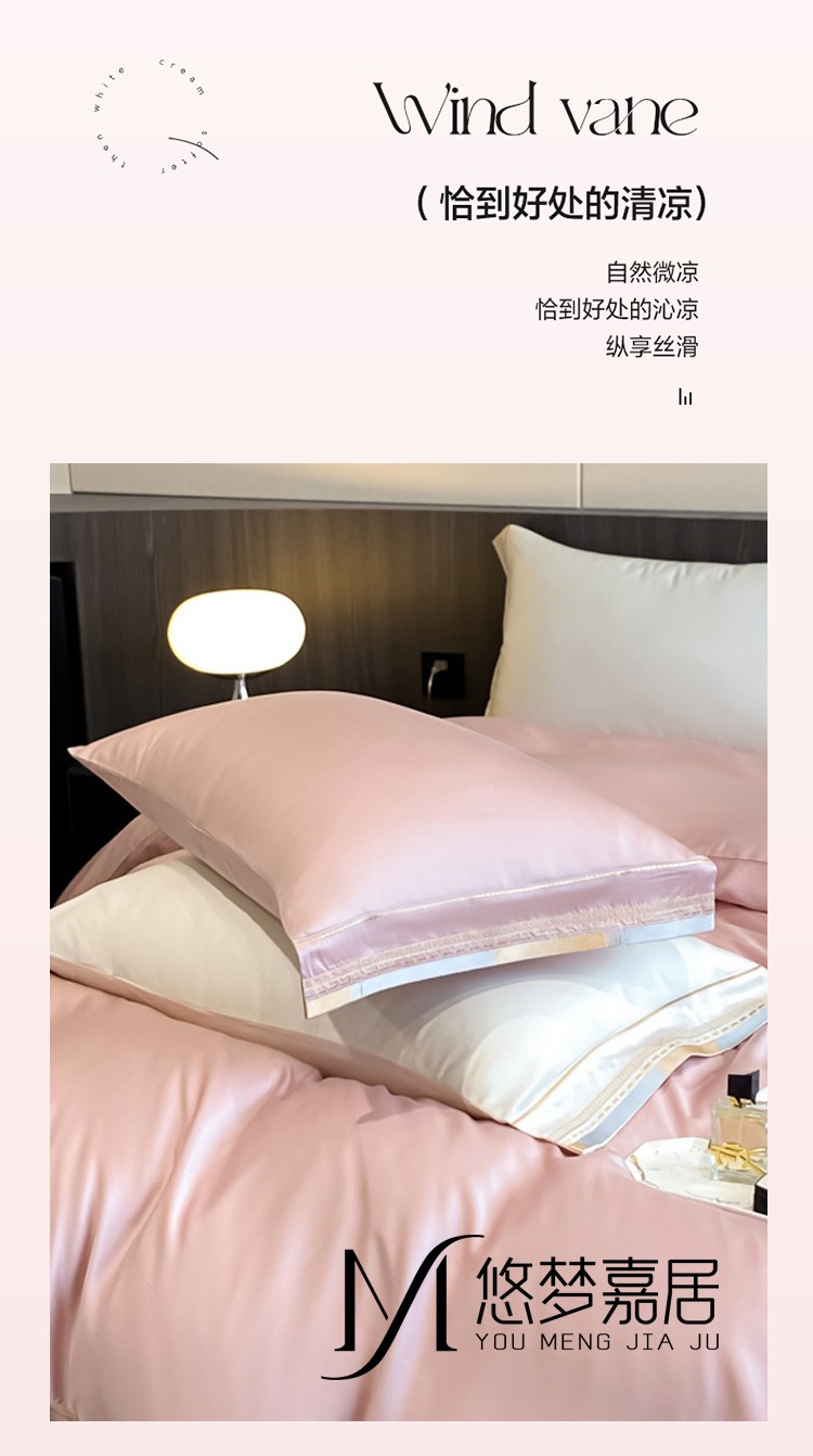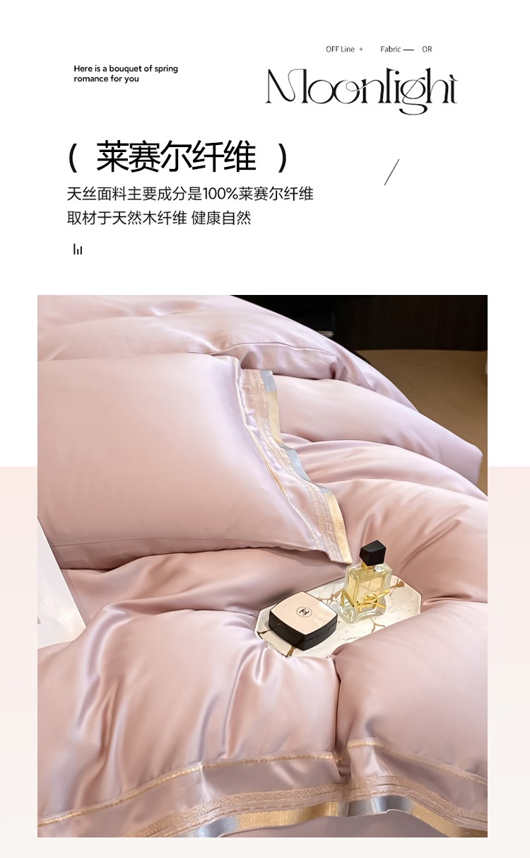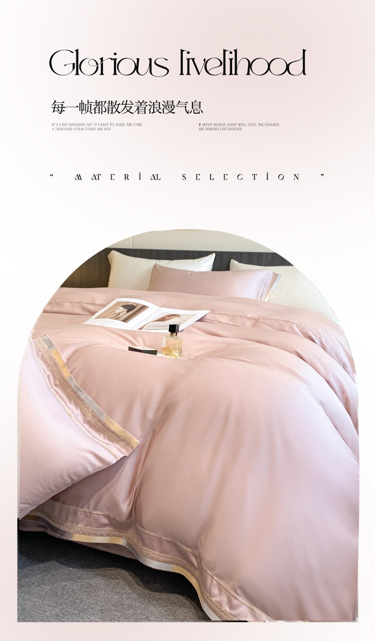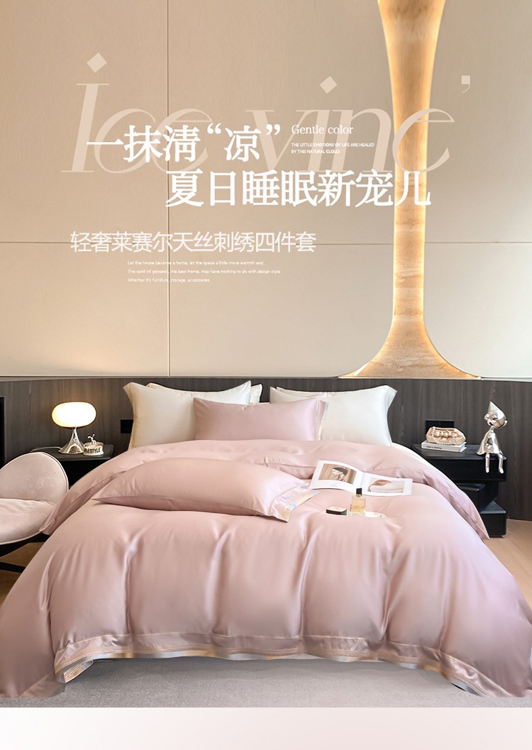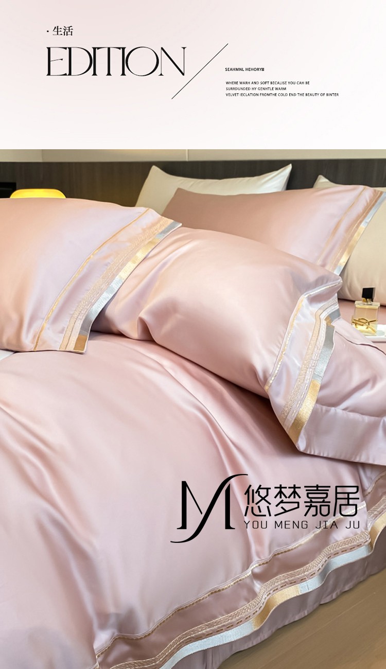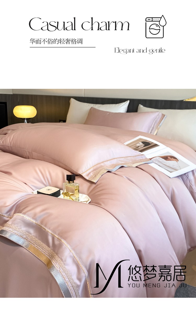 悠梦嘉居 YJ-14599 轻奢莱赛尔天丝刺绣四件套 200x230 豆沙(内蒙、新疆、西藏、青海、宁夏、甘肃运费另算)