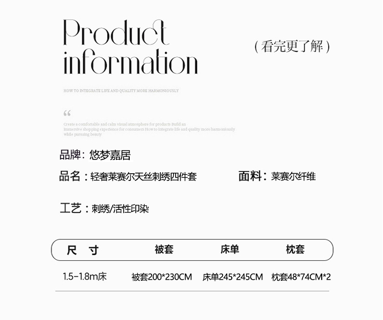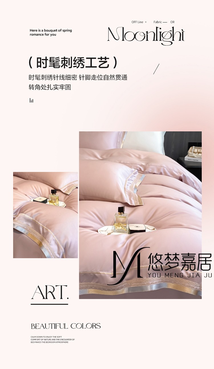 商品名称:悠梦嘉居 YJ-14599 轻奢莱赛尔天丝刺绣四件套 200x230 豆沙(内蒙、新疆、西藏、青海、宁夏、甘肃运费另算)