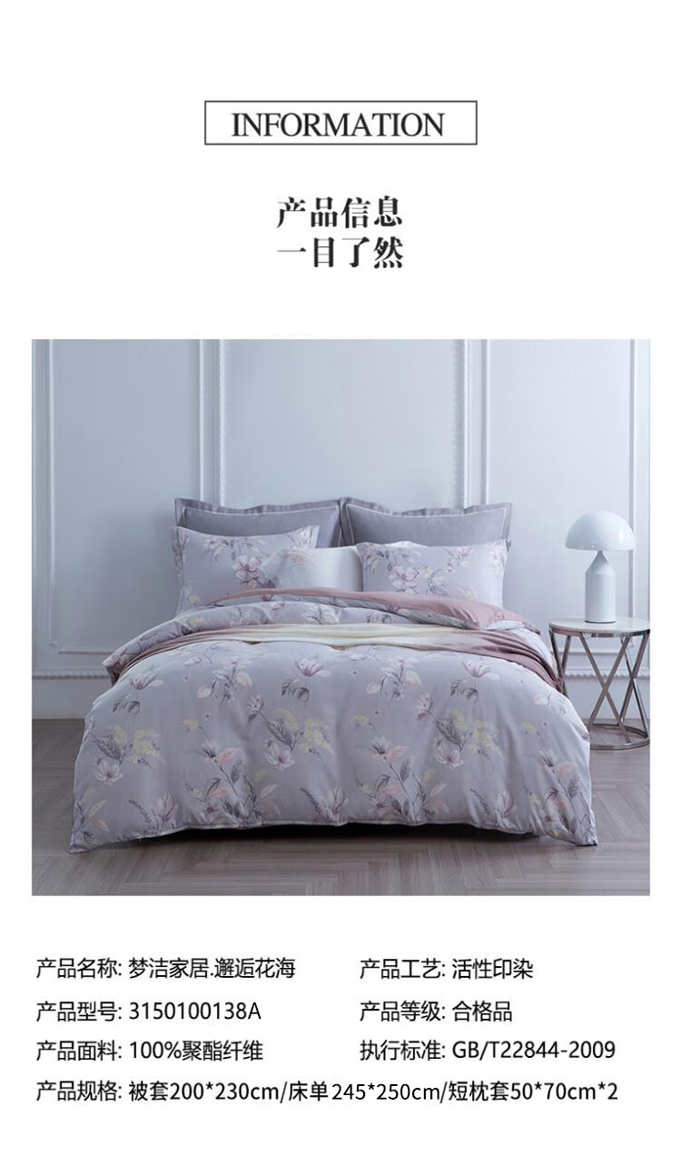商品名称:梦洁 MH四件套-邂逅花花200*230CM 6971295448386