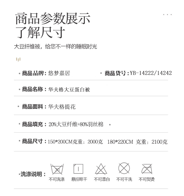 商品名称:悠梦嘉居 YB-14242华夫格大豆蛋白被180*220(内蒙、新疆、西藏、青海、宁夏、甘肃运费另算)