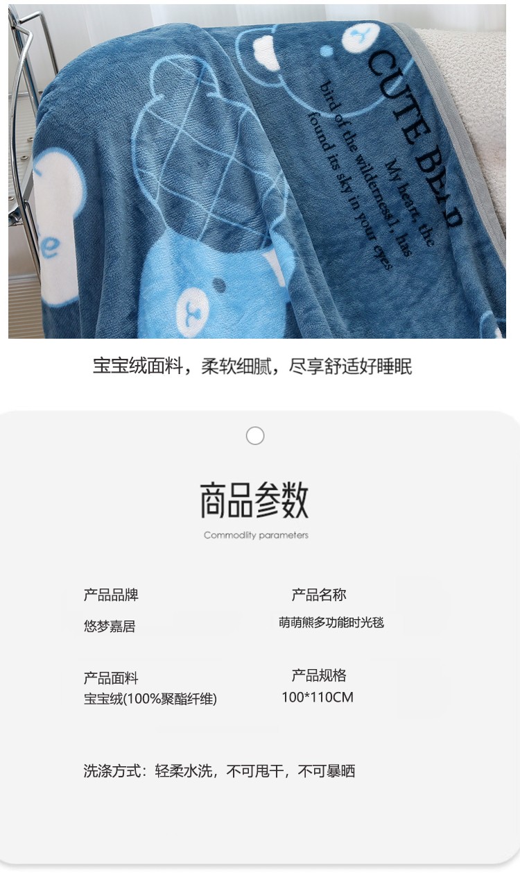 悠梦嘉居 YT-14401 萌萌熊多功能时光毯 100*110 萌萌熊(内蒙、新疆、西藏、青海、宁夏、甘肃运费另算)