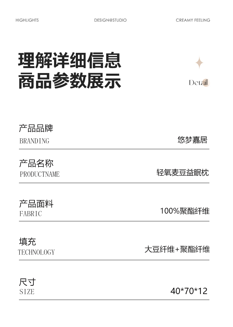 商品名称:悠梦嘉居 YZ-14806 轻氧麦豆益眠枕-单枕 40*70*12CM (内蒙、新疆、西藏、青海、宁夏、甘肃运费另算)