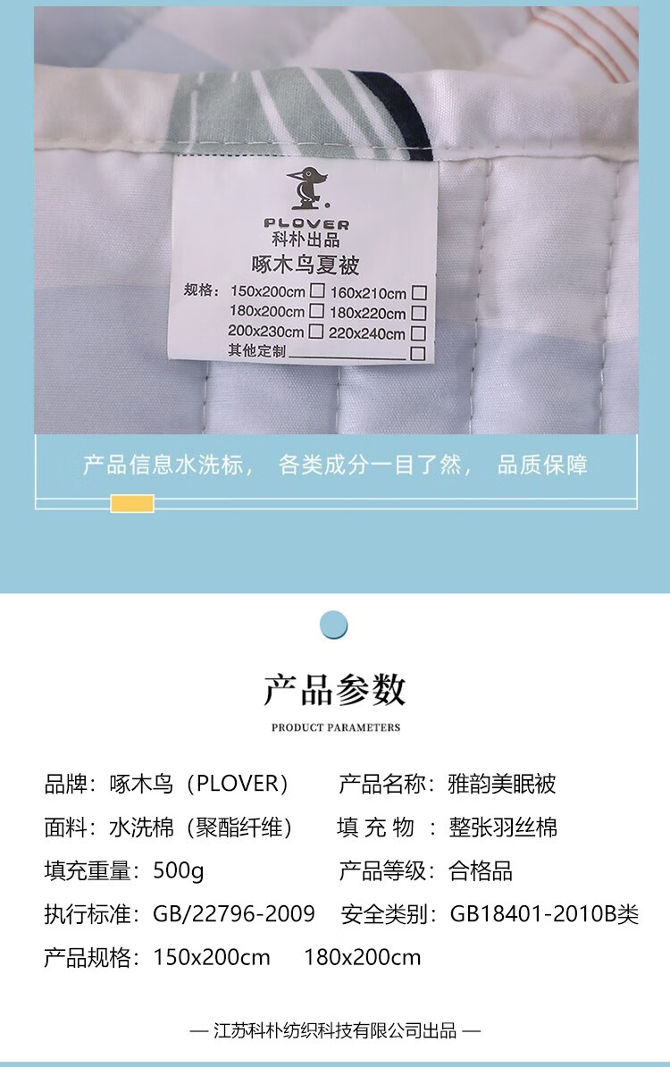 商品名称:啄木鸟(PLOVER) 夏被-雅韵美眠被 ZMN-XB-06 150*200CM