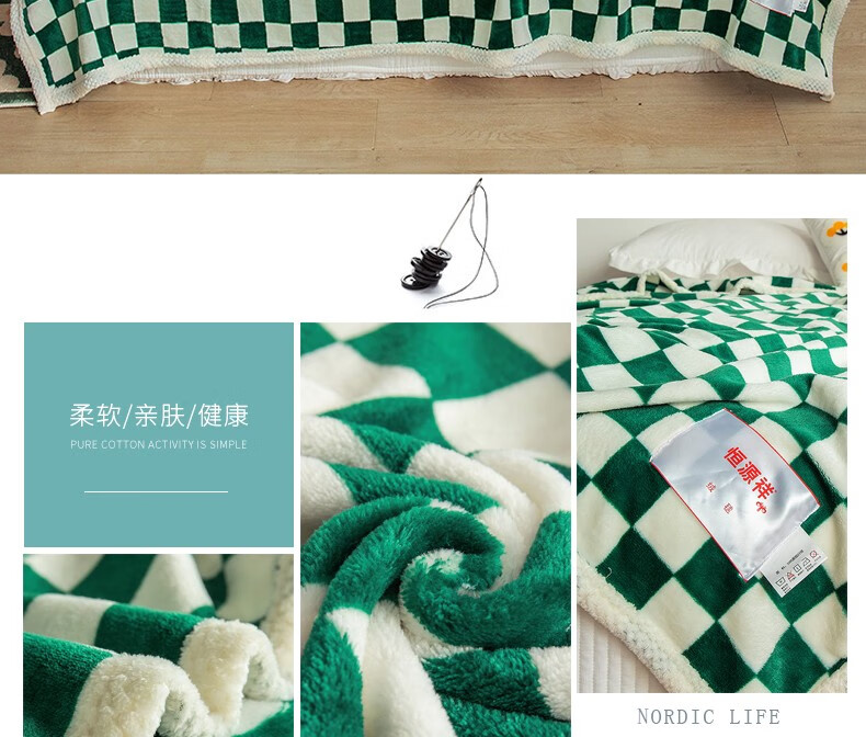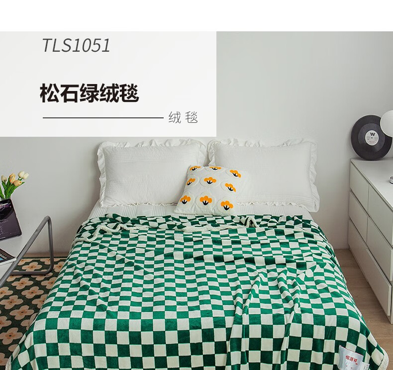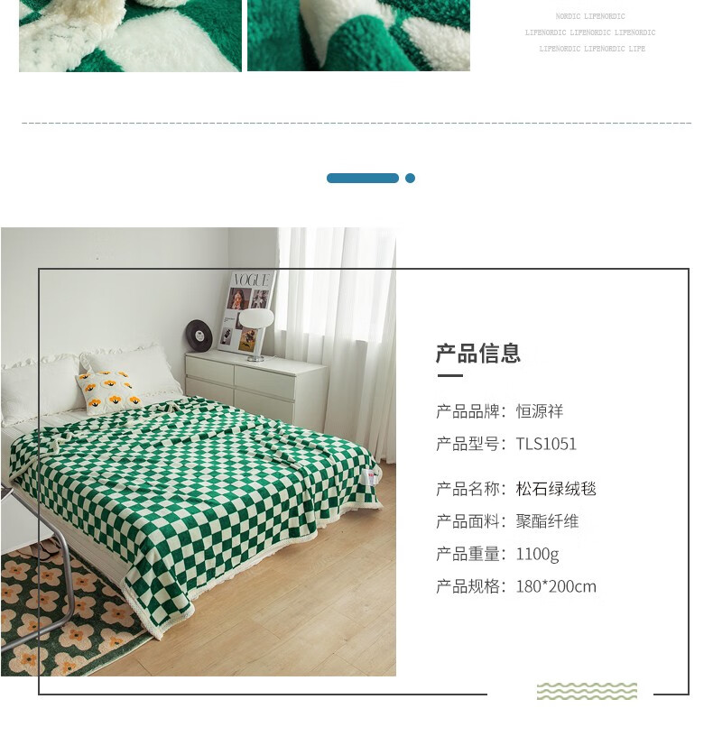 商品名称:恒源祥 松石绿绒毯TLS1051 180*200cm 1100g 6941204354039